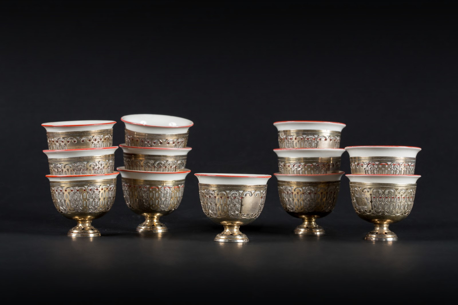 Arte Islamica Dodici zarf in porcellana europea con montatura Ottomana in...