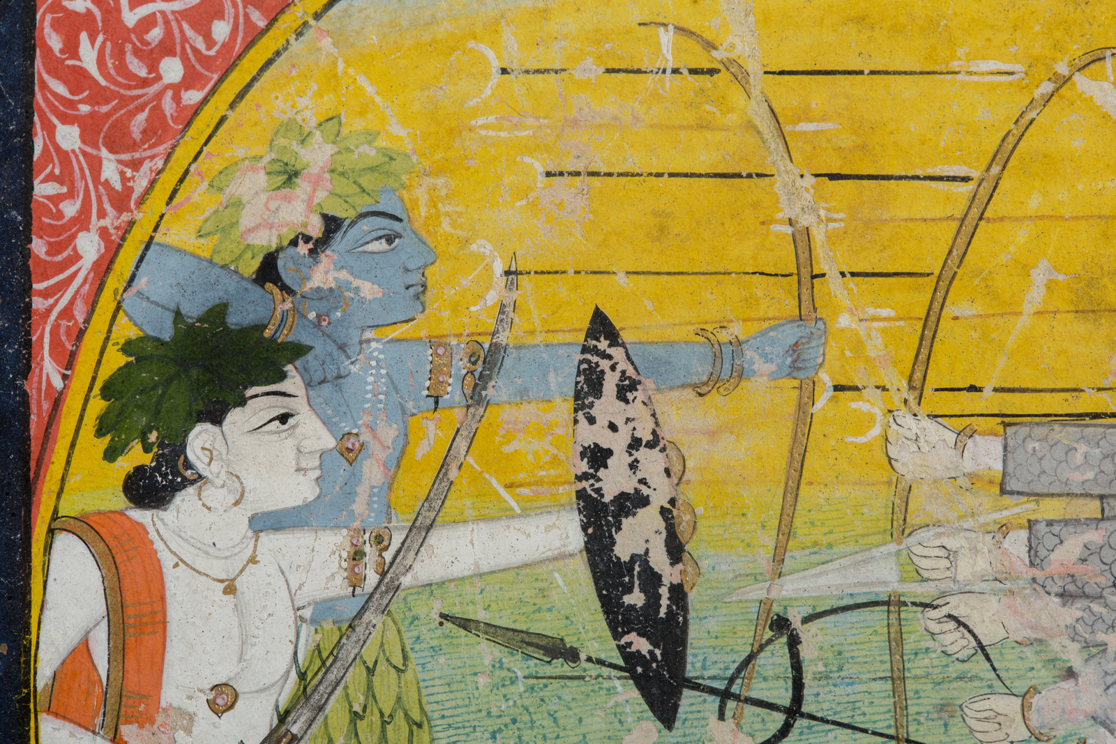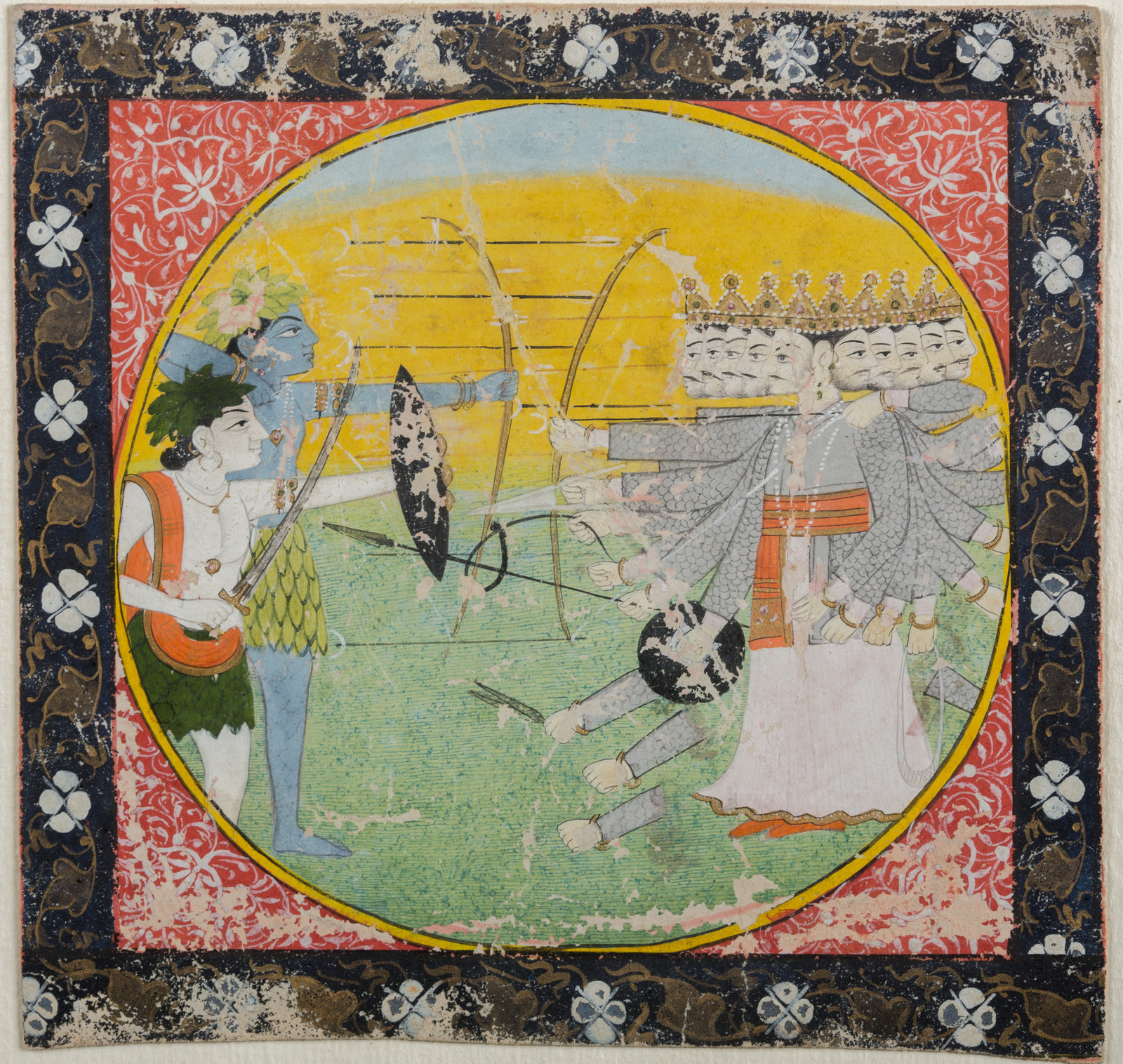 La seconda (14 X 14,5 cm) raffigura Rama ed il fratello Lakshmana, nella foresta, impegnati nel combattimento contro Ravana, il demone a dieci teste.