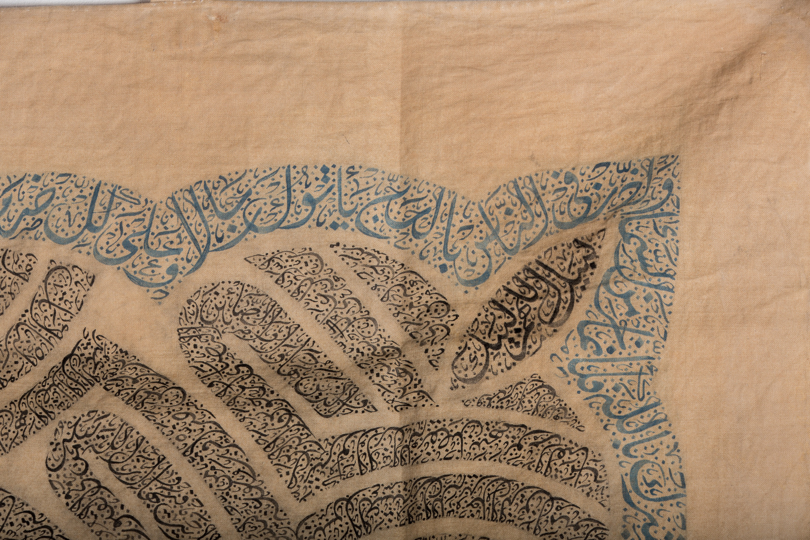 Arte Islamica Talismanic textile inscribed with Quranic quotations and Talbiyah