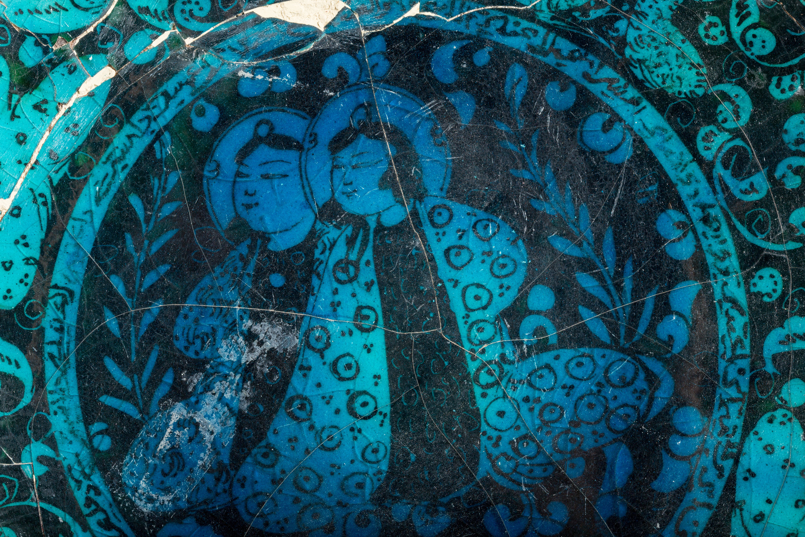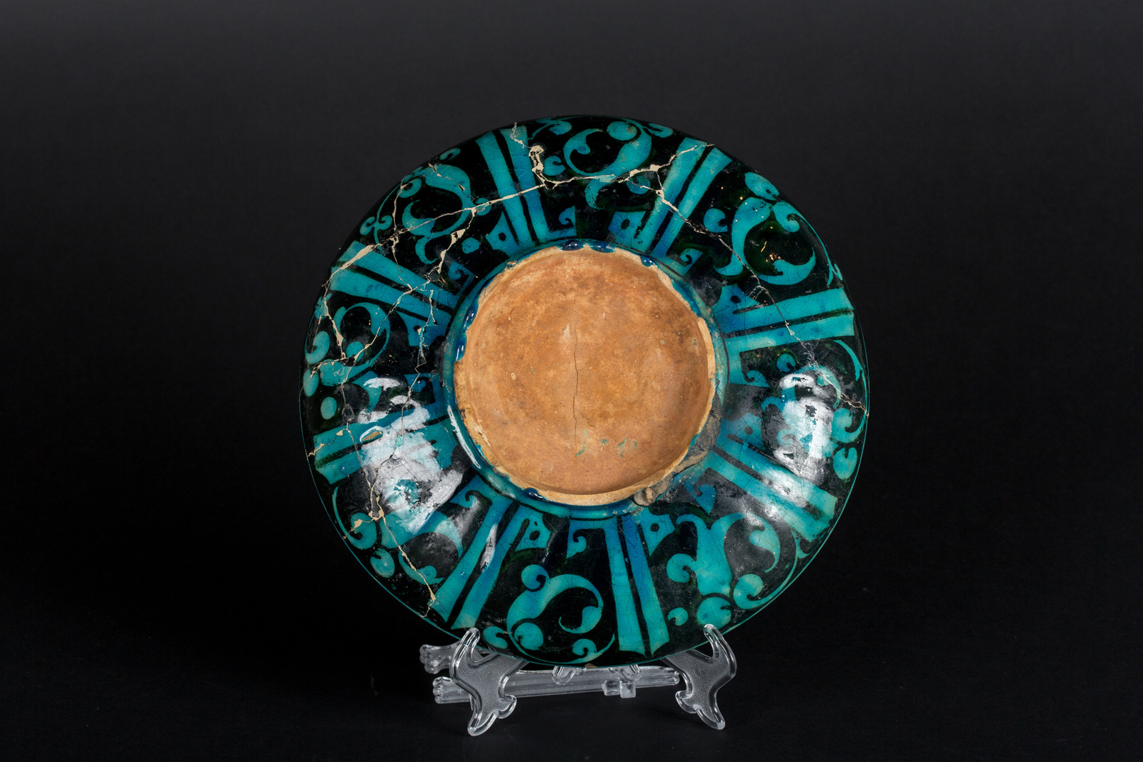 Arte Islamica Grande piatto in ceramica con invetriatura turchese