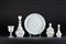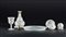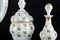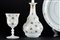 Turkey, Ottoman period, 19th century . . Cm 27,00. Set composed of a tray (diam. 27 cm), two bottles with cover (h. 27 and 15,5 cm), a vase and cover (h. 16,5 cm) and a goblet (h. 13,5 cm) decorated with gilded flowers or leaves.