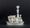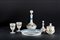Turkey, Ottoman period, 19th century . . Cm 26,00. A set composed of a tray (diam. 26 cm), two cups (h. 11 cm), two bottles and stoppers (h. 26 and 14 cm) and a vase with cover (h. 13,5 cm)