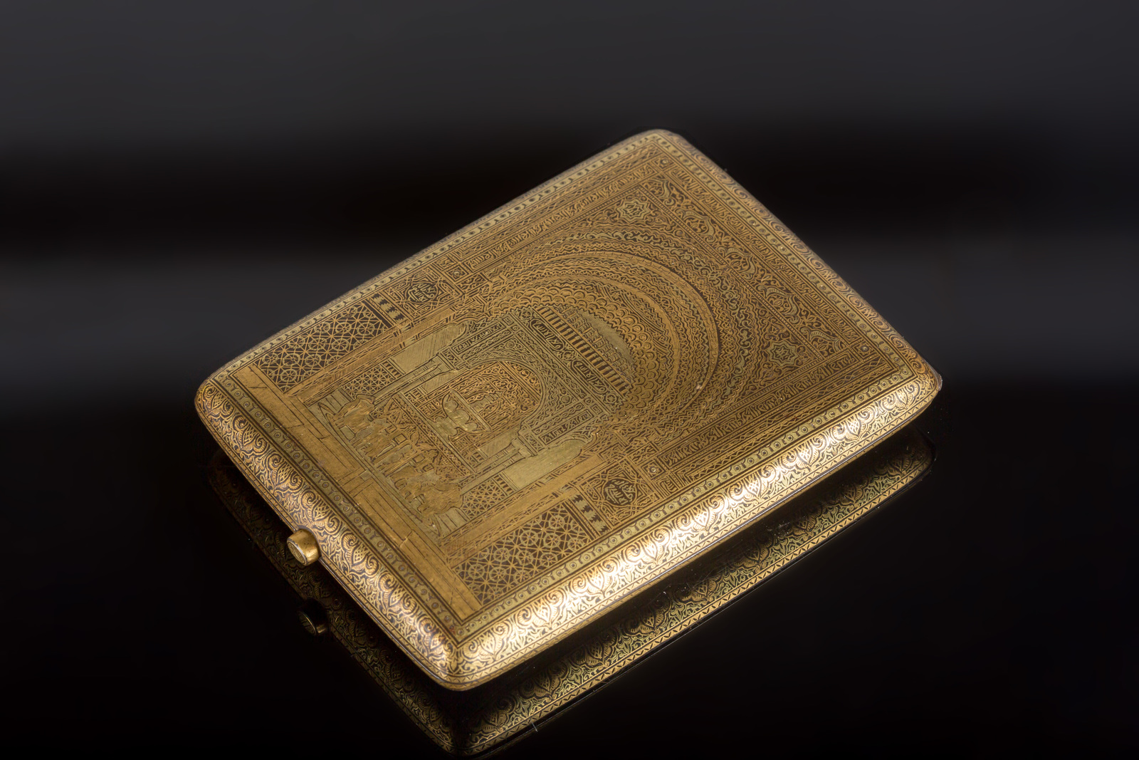 Arte Islamica A brass cigarettes holder decorated with Alhambra engravings
