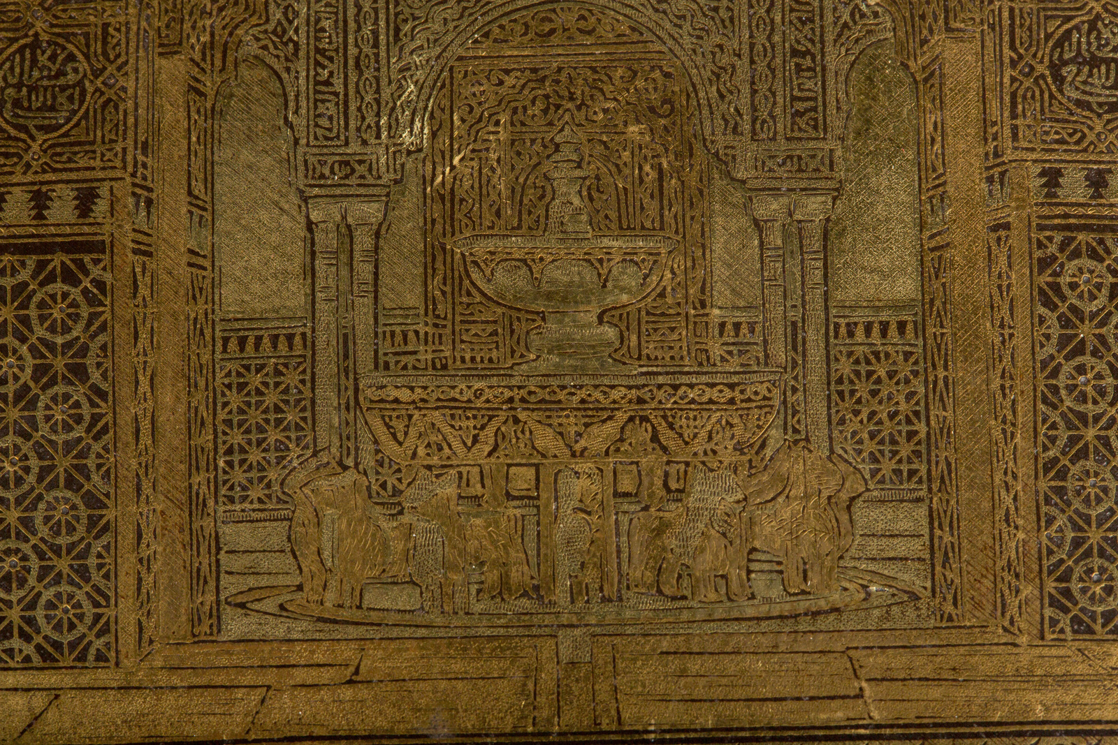 Arte Islamica Porta sigarette in ottone inciso con scenari dell'Alhambra...