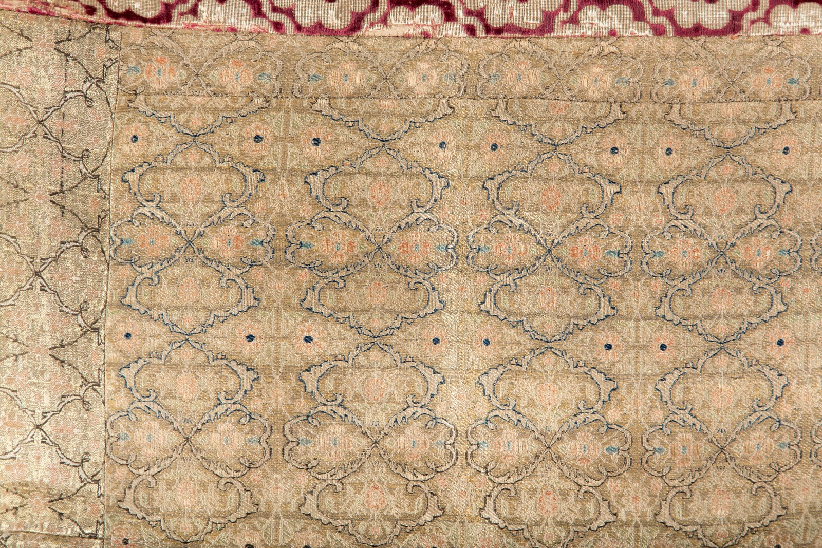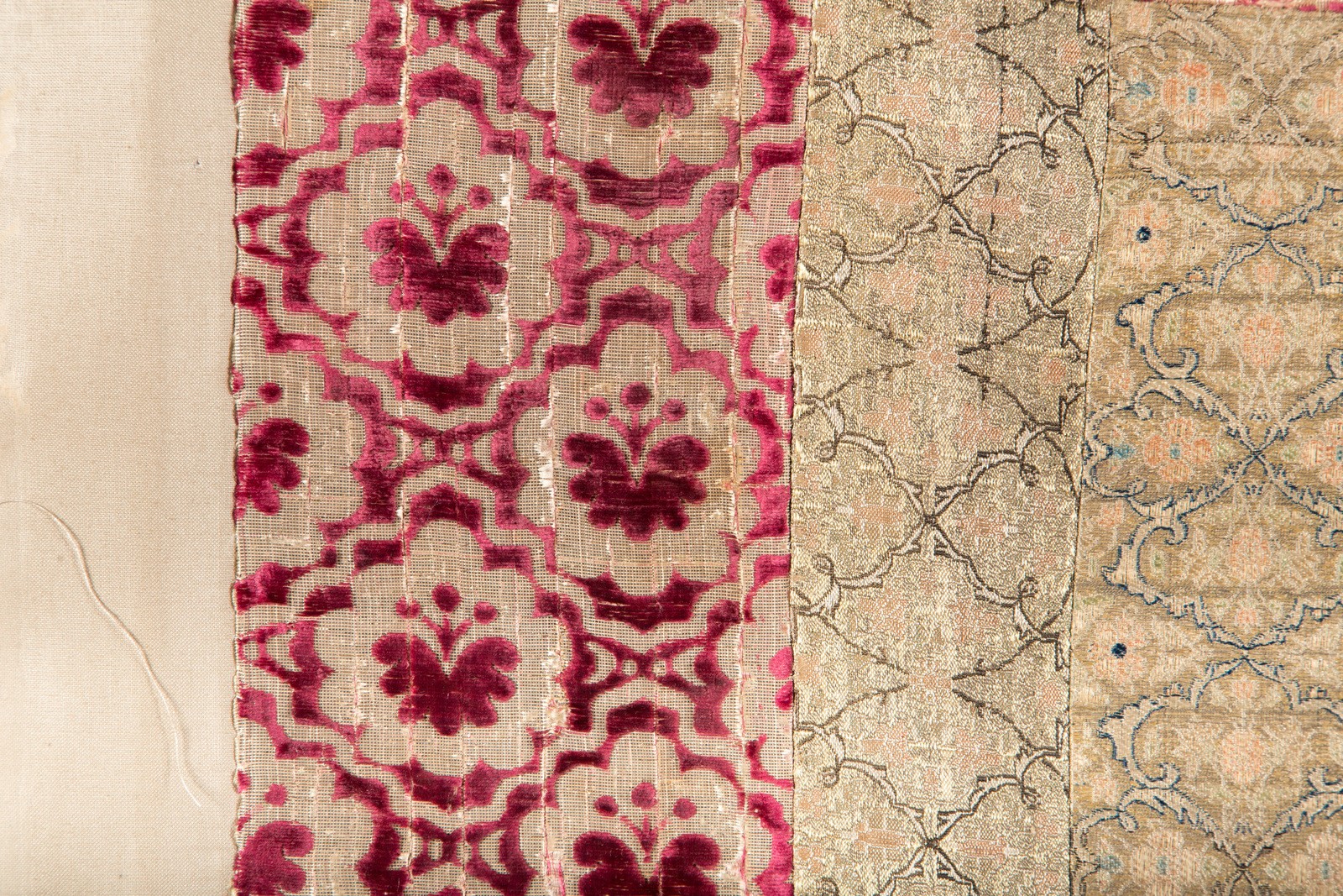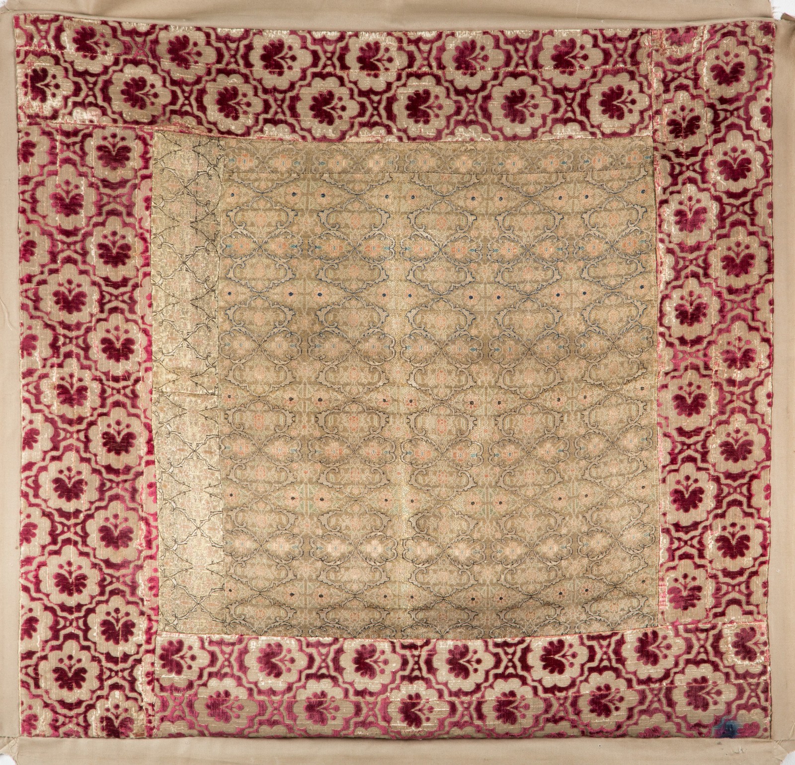 Arte Islamica Tessuto in seta ricamata con cornice decorata in velluto rosso
