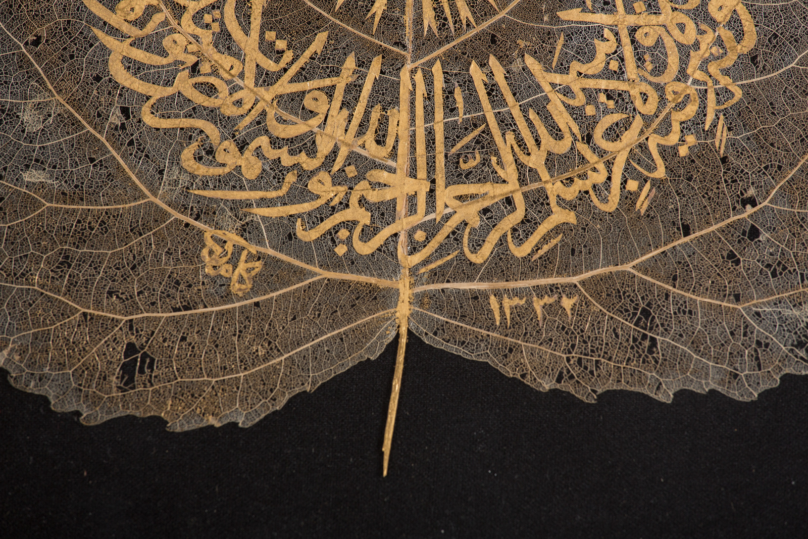 Arte Islamica Ottoman gold calligraphy on a leaf signed by Kamran