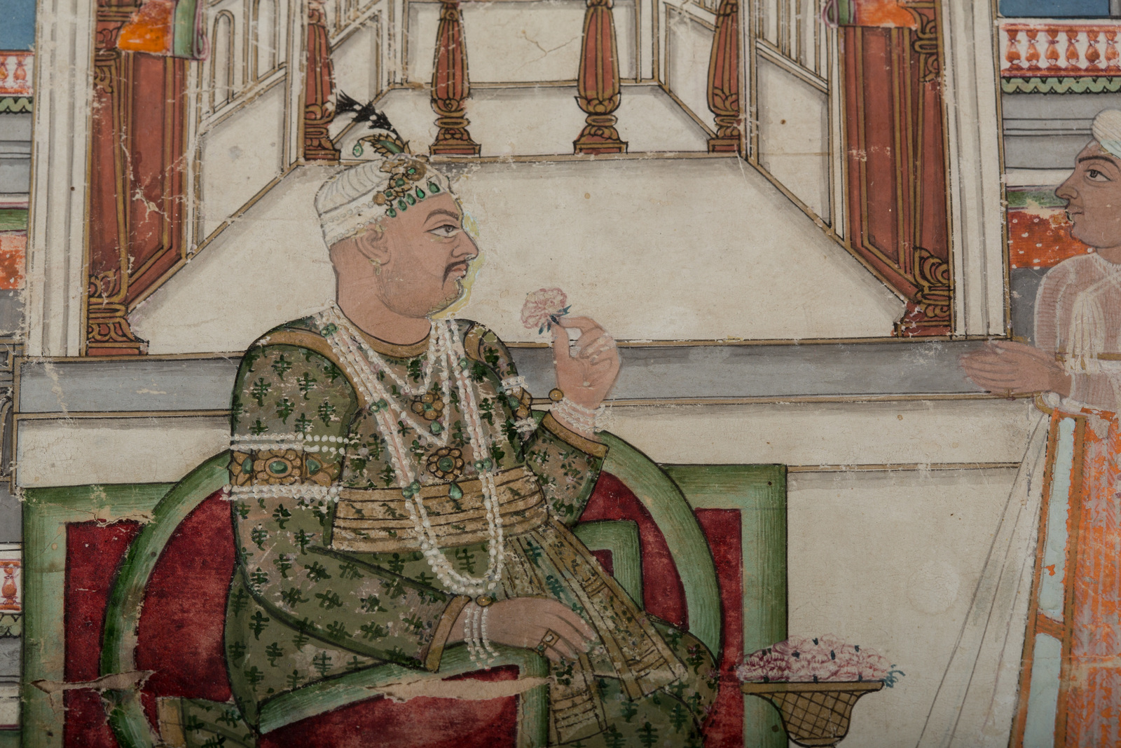 Arte Indiana A miniature painting depicting a nobleman in a palace India, Rajasthan, 19th century . . Cm 20,00 x 23,00.