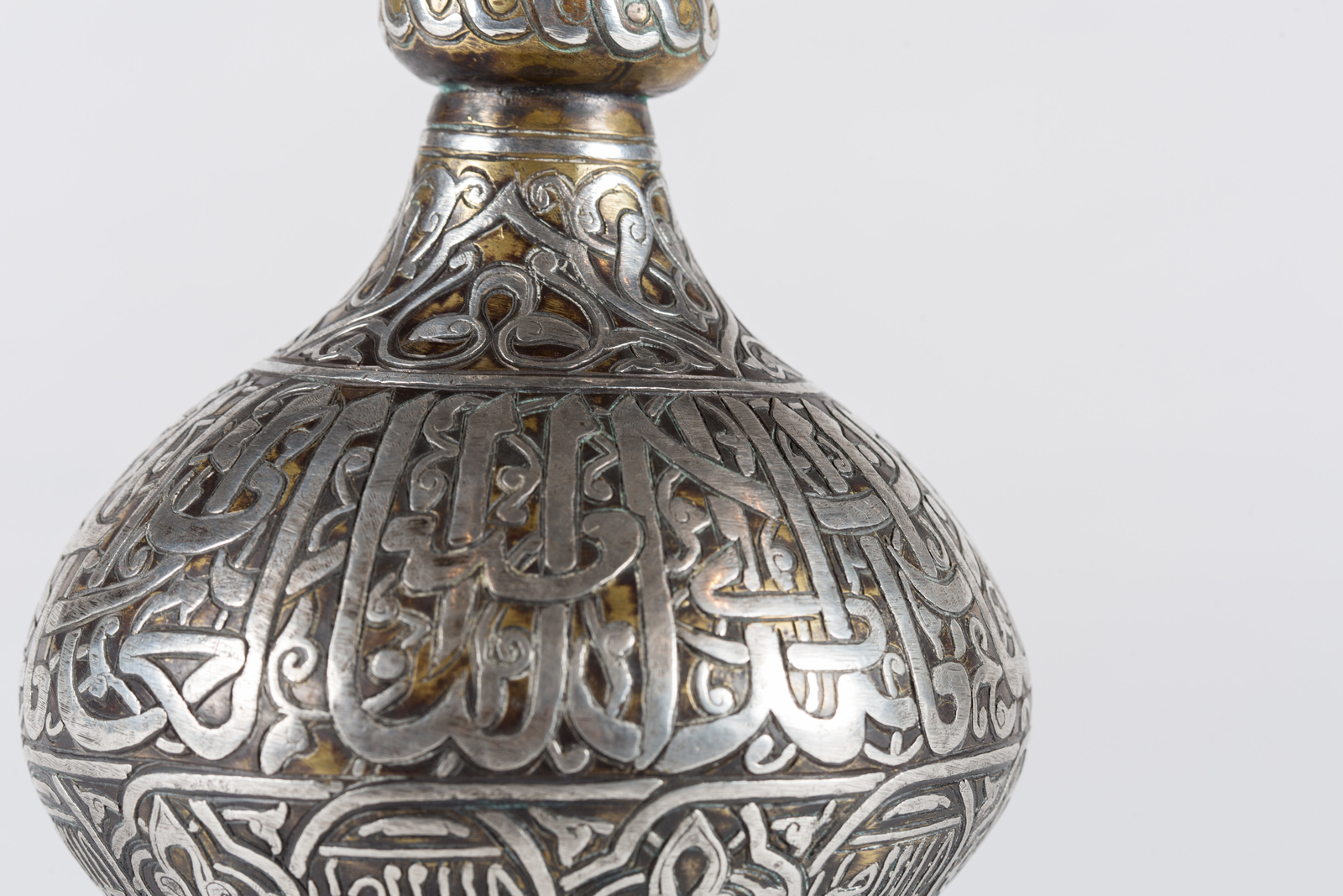 Lot 390 | Arte Islamica Aspersorio in metallo intarsiato con scritte in argento Egito o...