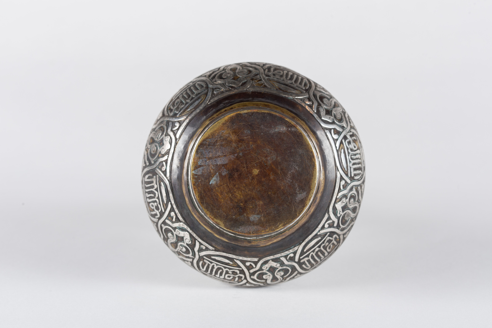 Arte Islamica A cairoware metal rose sprinkle water inlaid with calligraphic silver wire Egypt or Syria, 19th century . . Cm 29,00.