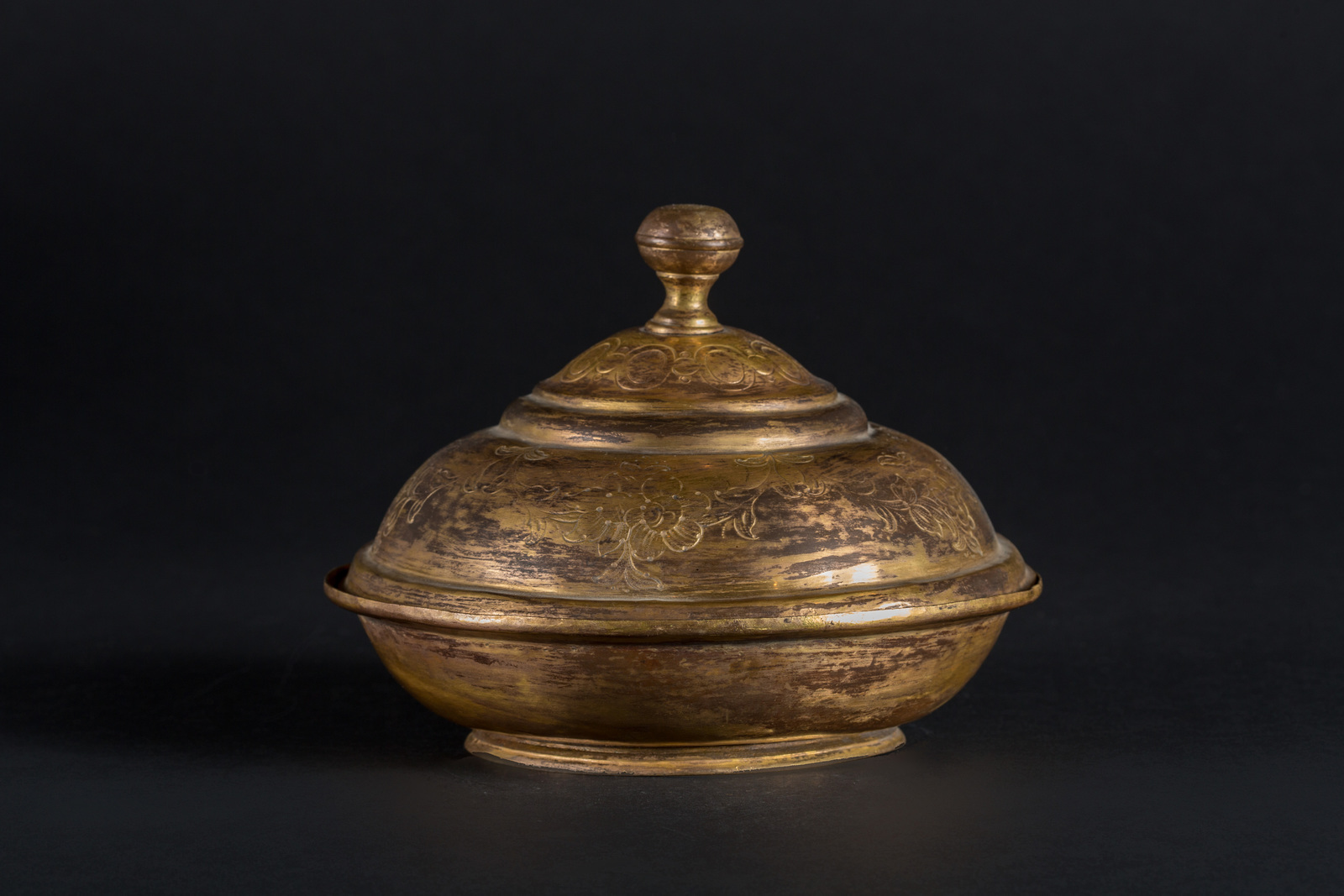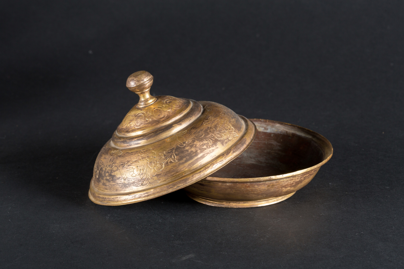 Arte Islamica Contenitore con coperchio (Sahan) in rame dorato (Tombak)