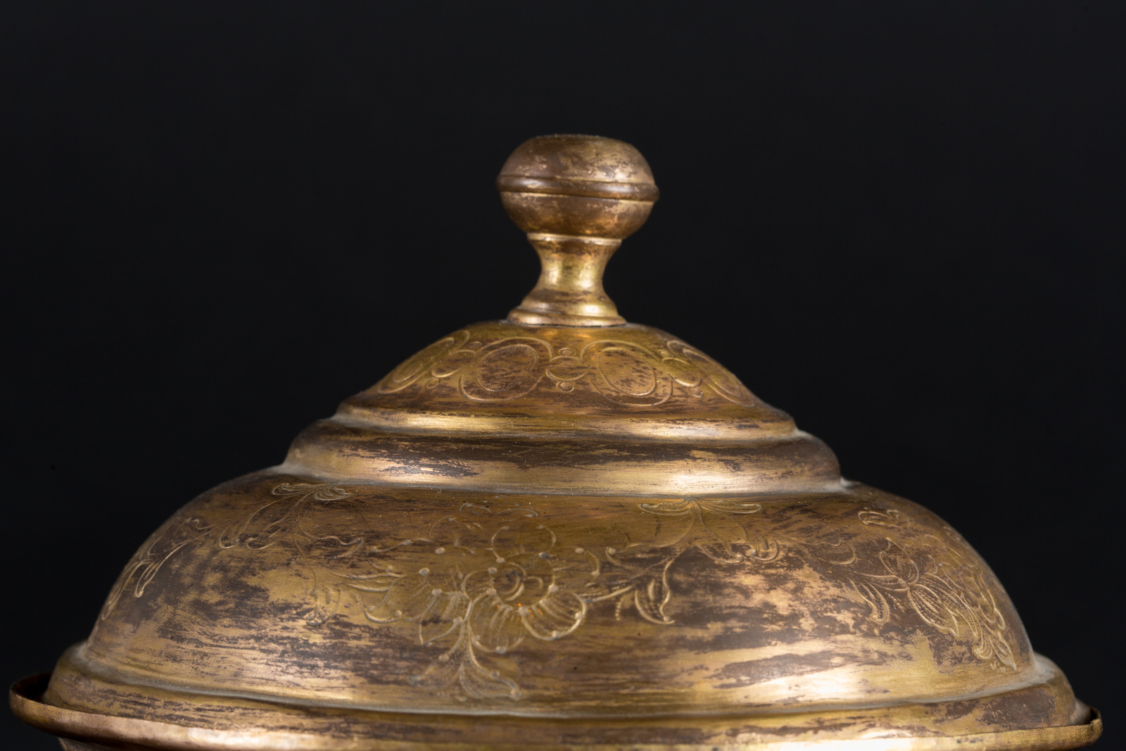 Arte Islamica Contenitore con coperchio (Sahan) in rame dorato (Tombak)...