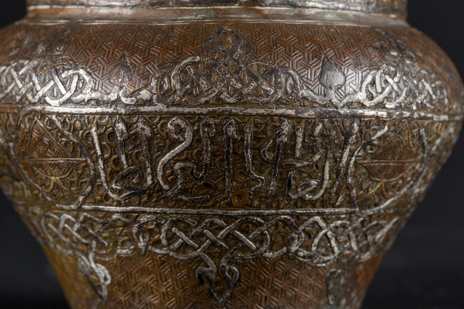 Arte Islamica A brass silver inlaid container in the Mamluk style
