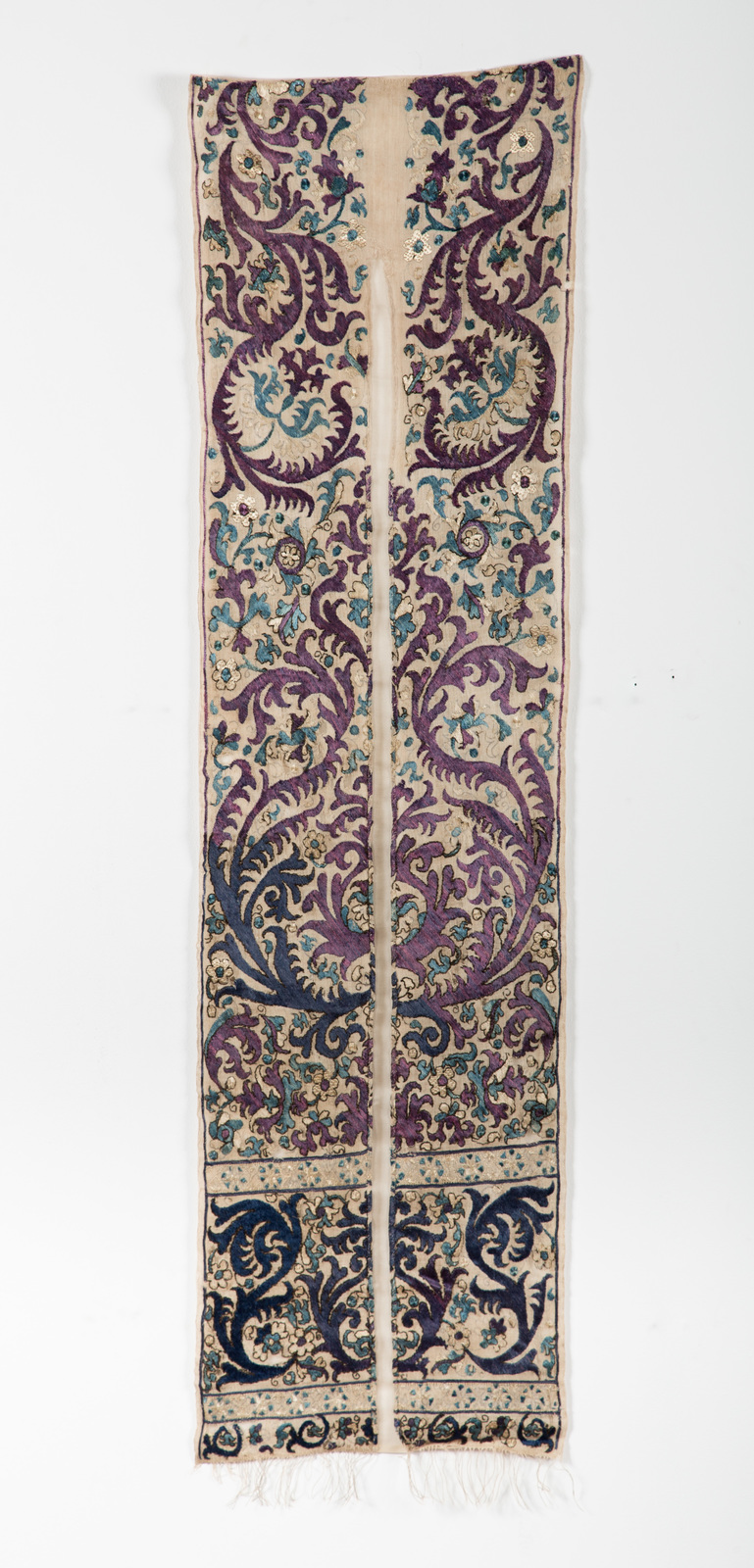 Arte Islamica Tessuto di lino ricamato in seta a motivo floreale