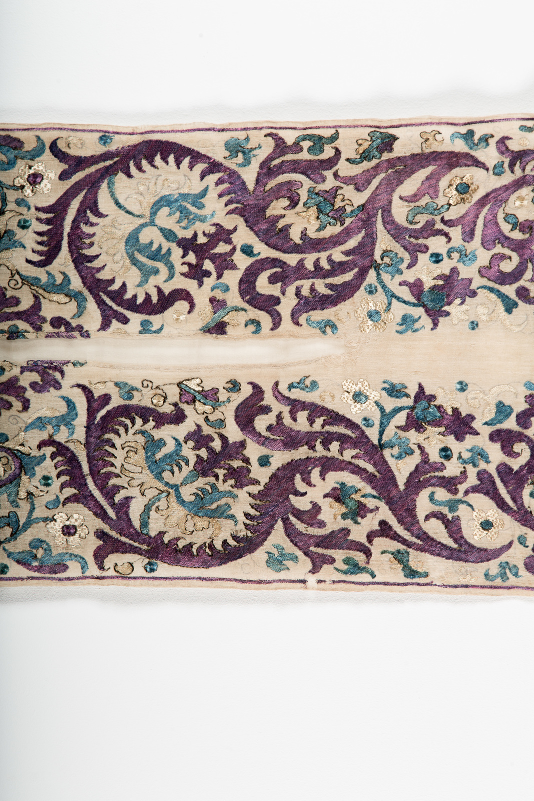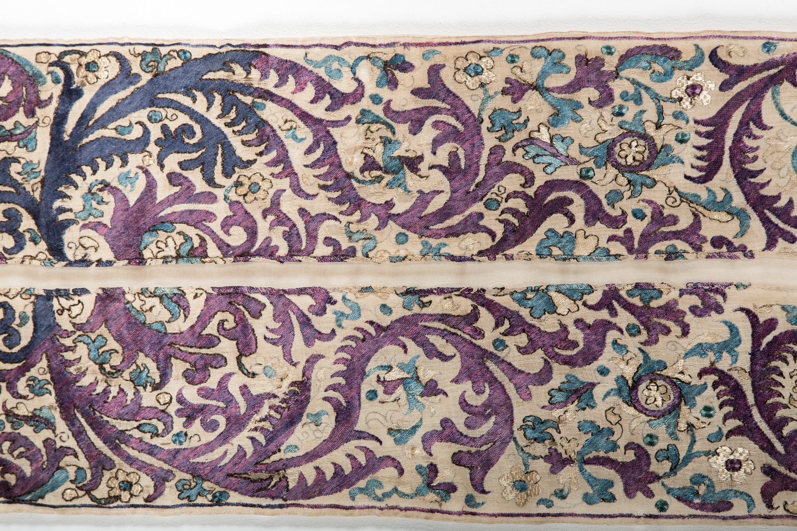 Arte Islamica Silk embroidered linen fabric decorated with vegetal and floral motifs