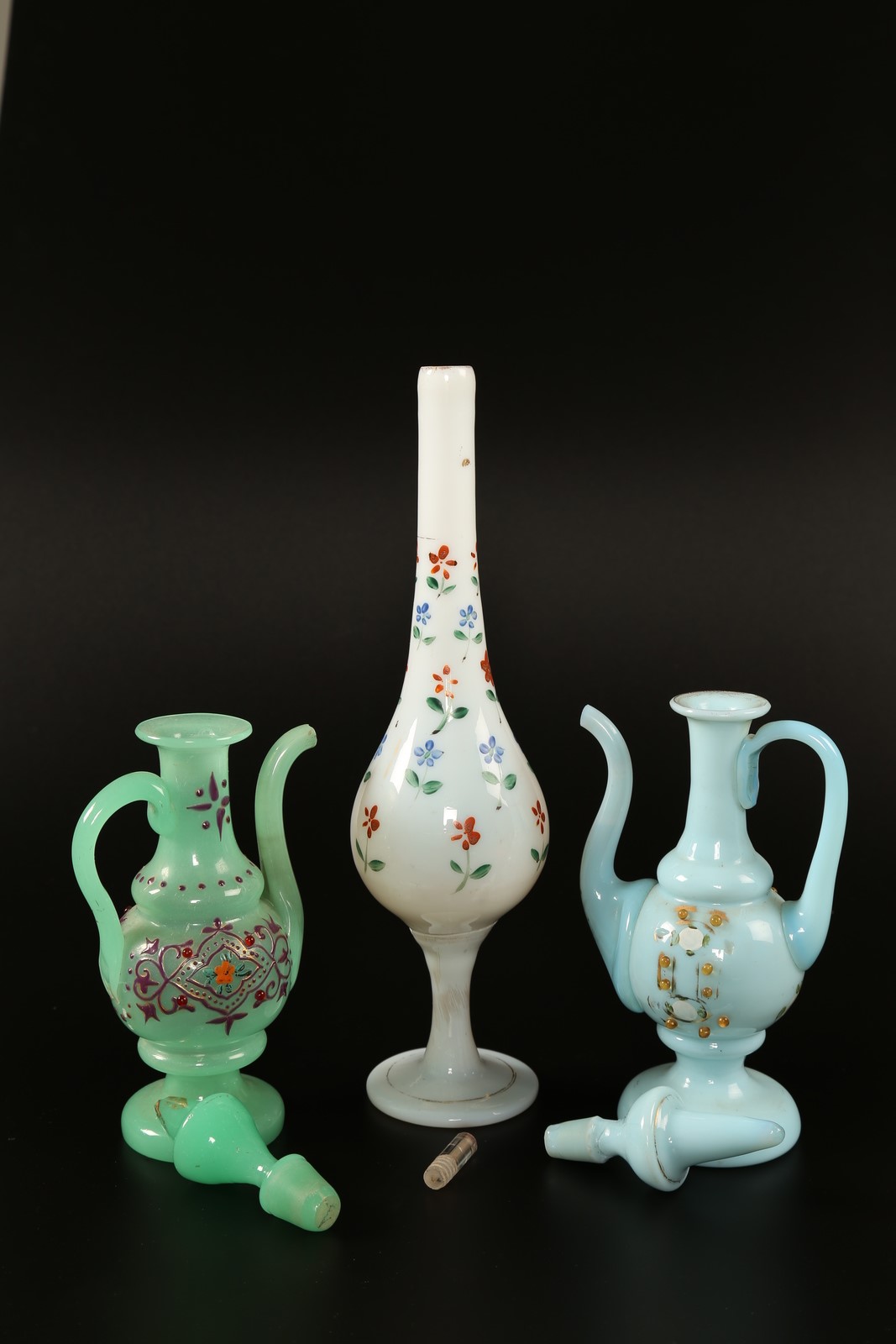 ARTE ISLAMICA Three Beykoz enameled opaline glass bottles