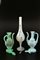 Turchia, Beykoz, periodo Ottomano, tardo XIX secolo . -. Cm 29,00. Tre piccole bottiglie in vetro turchese, bianco e verde smaltate con motivo floreale policromo.