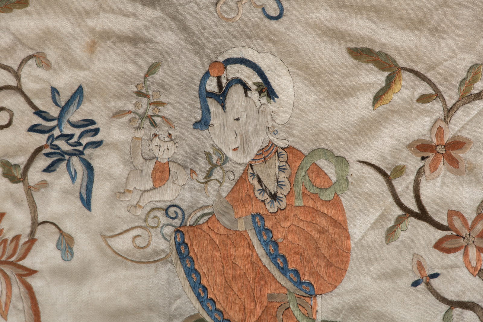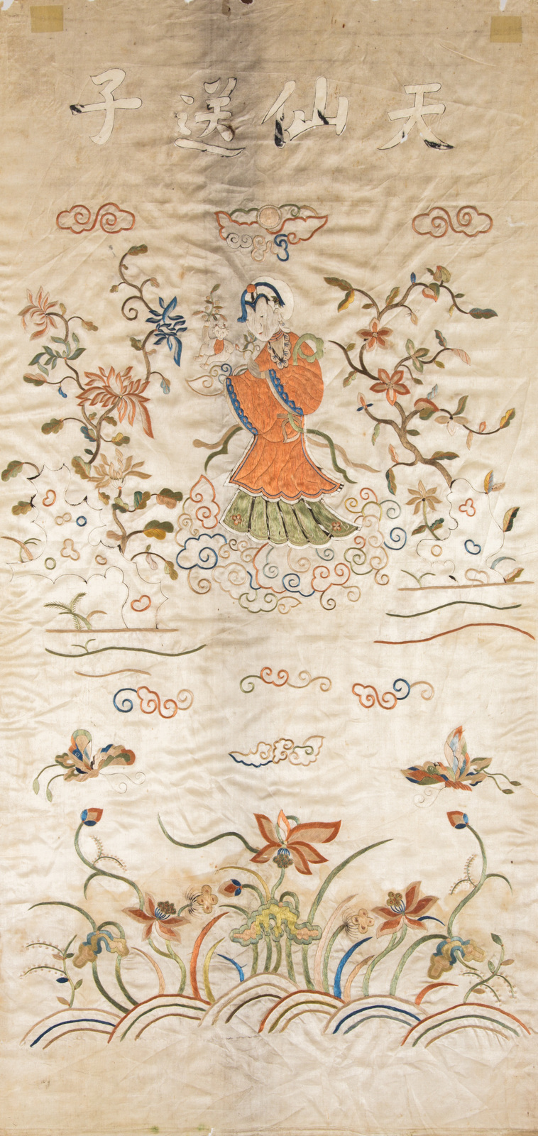 Arte Cinese A silk embroidered fabric depicting Guanyin China, Qing dynasty, 19th century . . Cm 45,00 x 91,00.