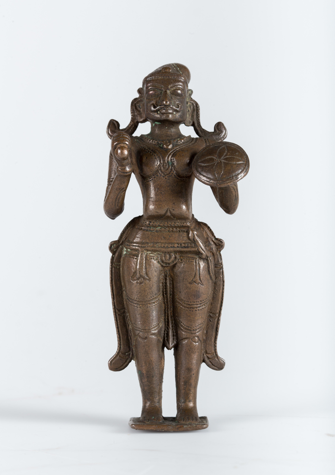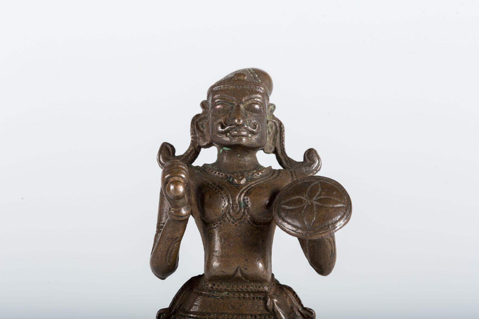 Arte Indiana Bronzo raffigurante un uomo con uno scudo India Meridionale,...