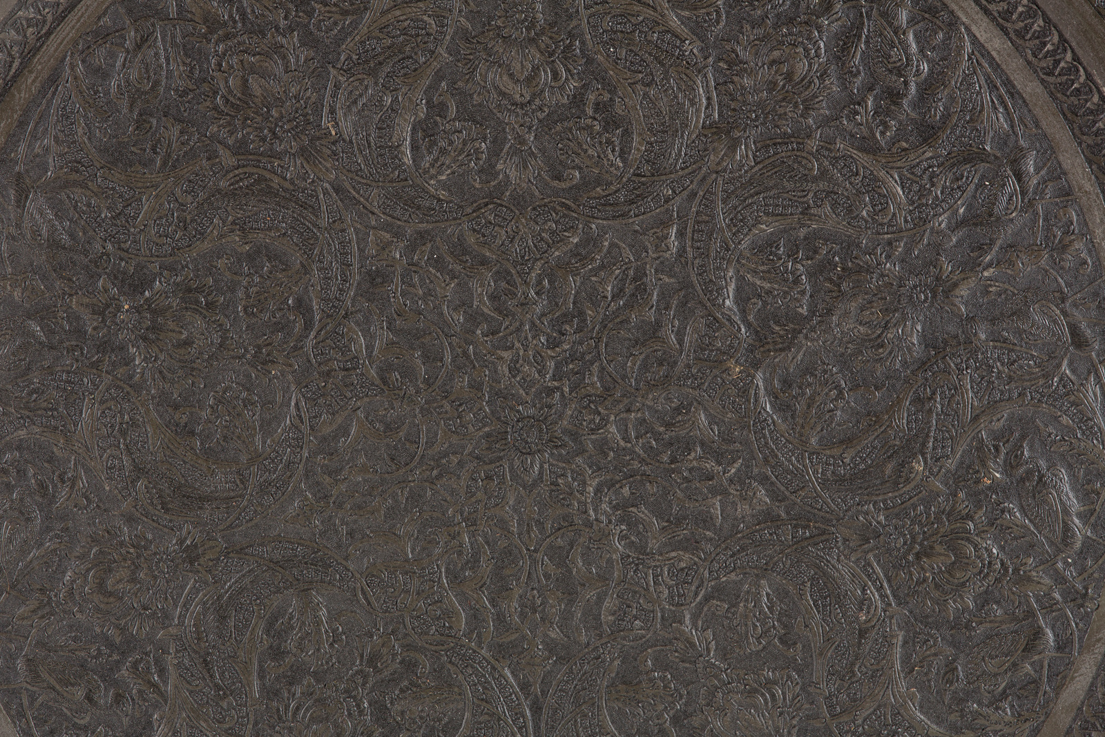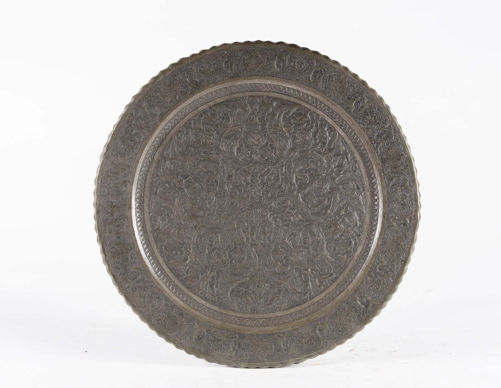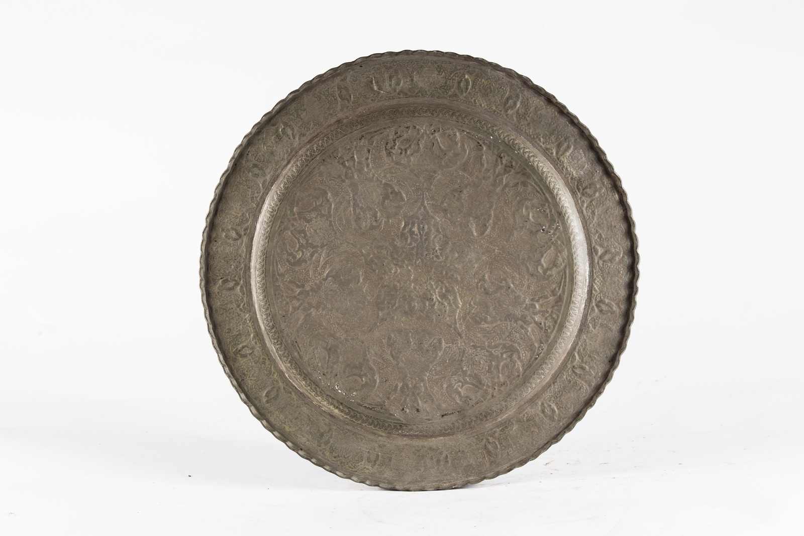 Arte Islamica A Persian pewter tray decorated with arabesque and birds
