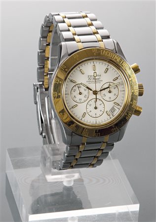 ZENITH El Primero, cronografo a tre contatori, anni '90 Diam. 40 Cassa in tre corpi in acciaio e oro giallo, fondo a vite, pulsanti a pompa, lunetta con scala tachimetrica incisa Quadrante con indici applicati e contatore secondi continui ad ore 9; ore 12 al 6; 30 minuti al 3 Datario alle ore 5 Movimento automatico calibro El Primero