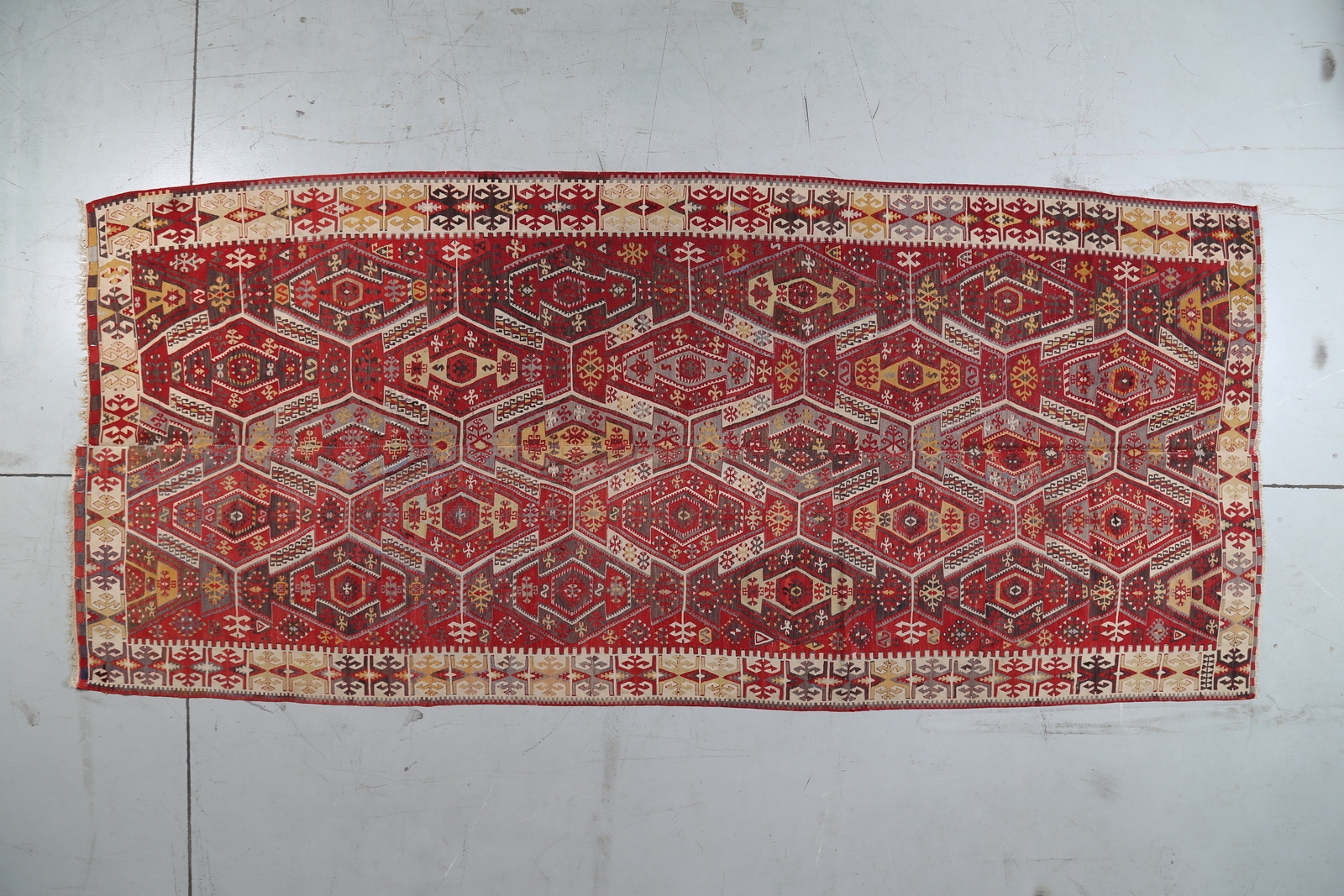 KILIM Tappeto orientale. Anatolia. 1920. Lana e cotone. Cm 165,00 x 375,00. Ottimo stato di conservazione.