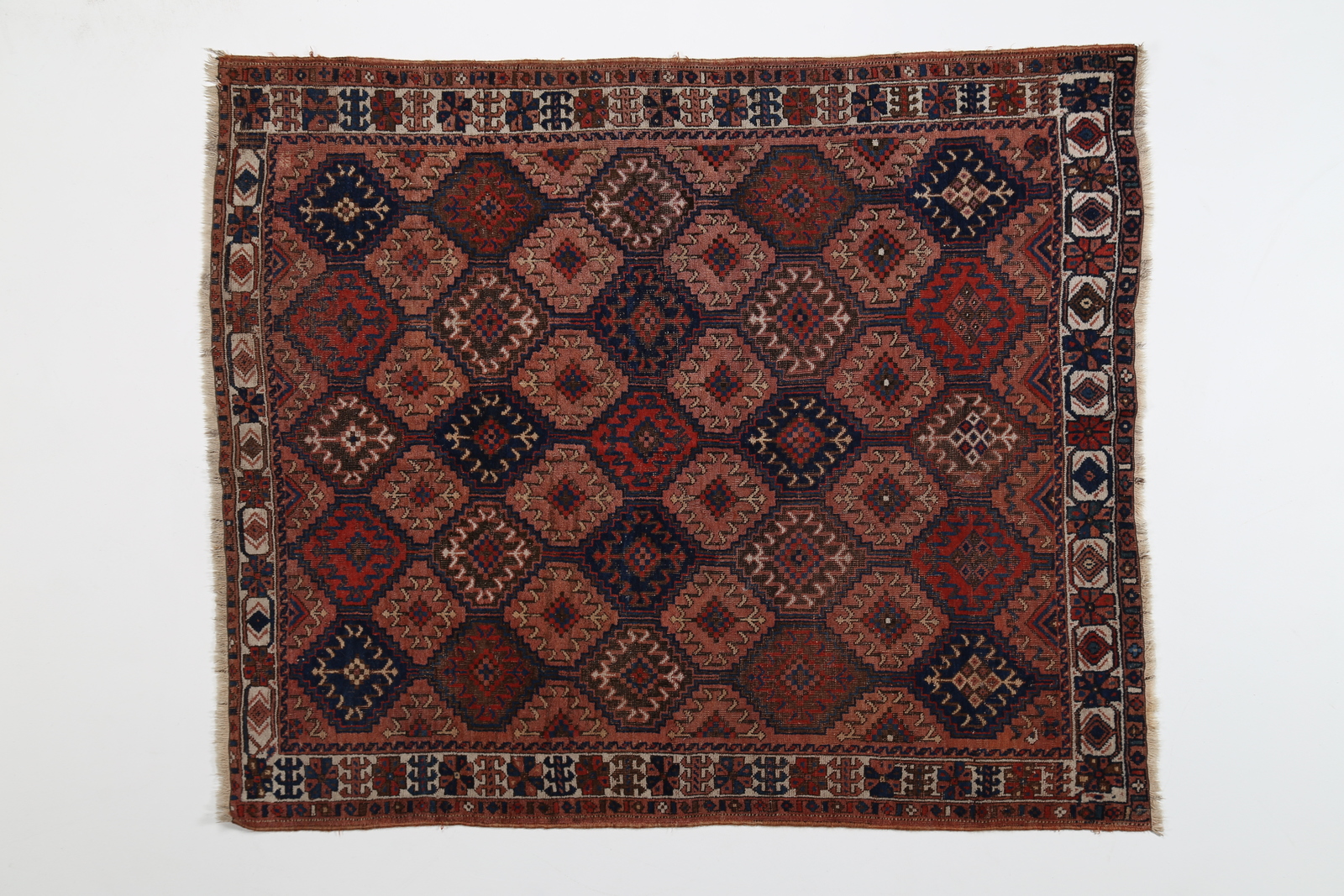 AFCHAR Tappeto orientale. Persia. Lana e cotone. Cm 135,00 x 161,00. Bordo chiaro, molti rombi. Buono stato di conservazione. Fine XIX secolo.