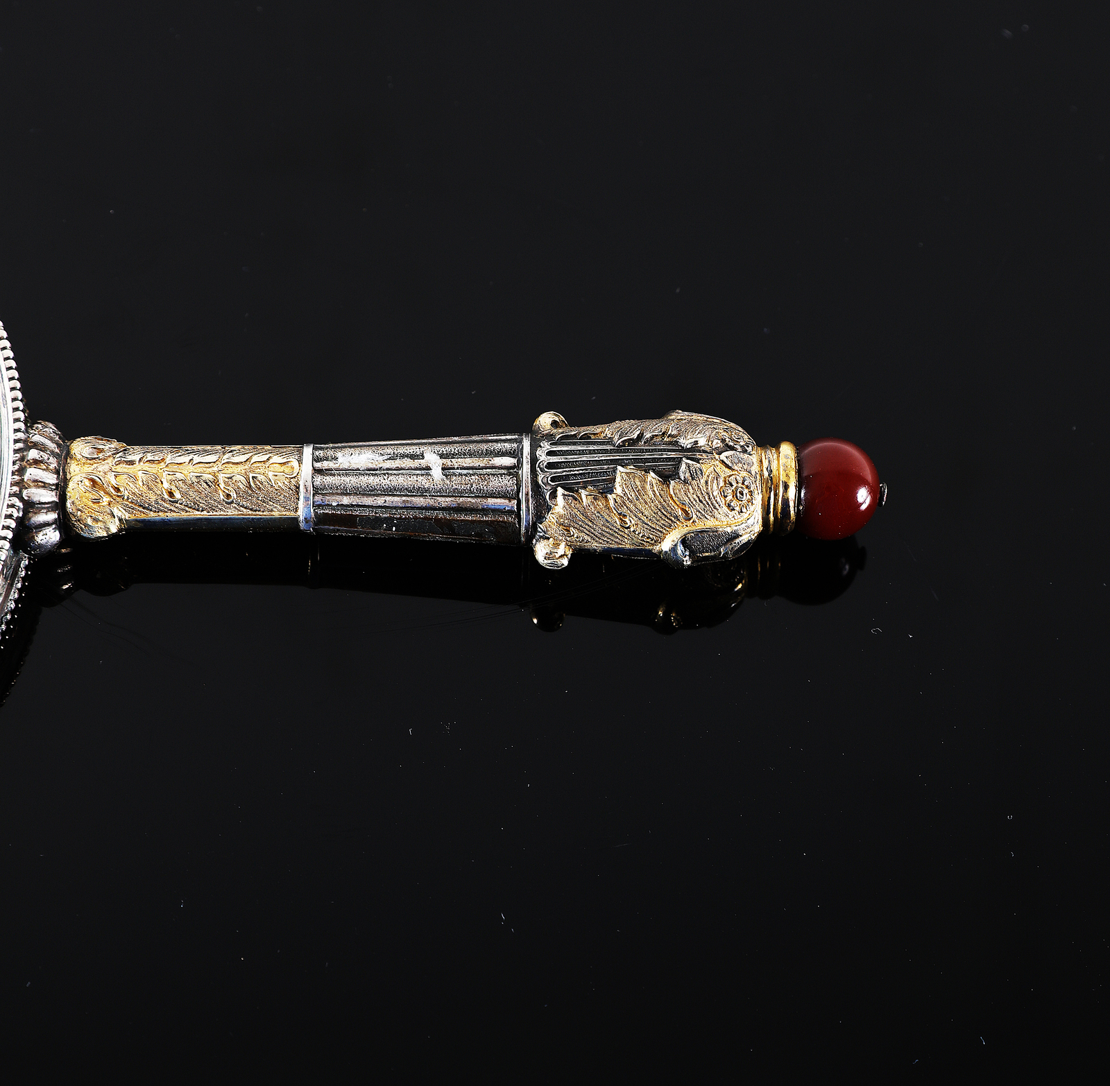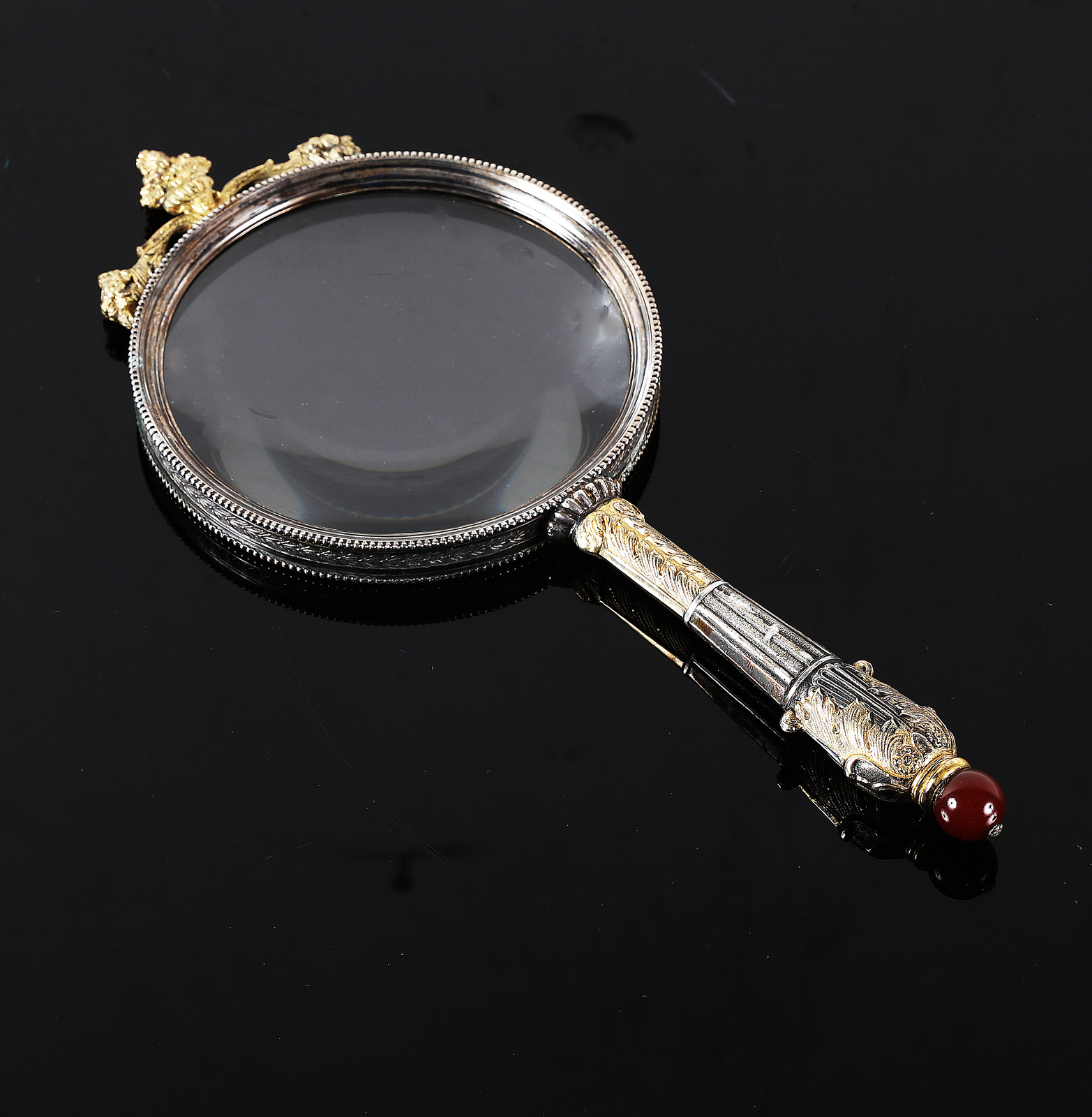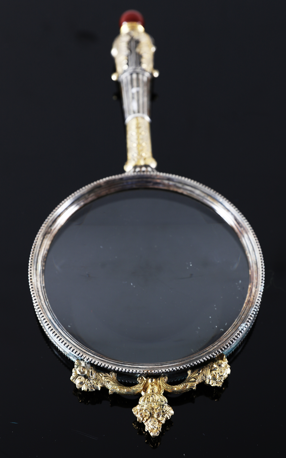 MANIFATTURA ROMANA DEL XVIII SECOLO Lente. Vetro e argento. Cm 13,00 x 28,00....