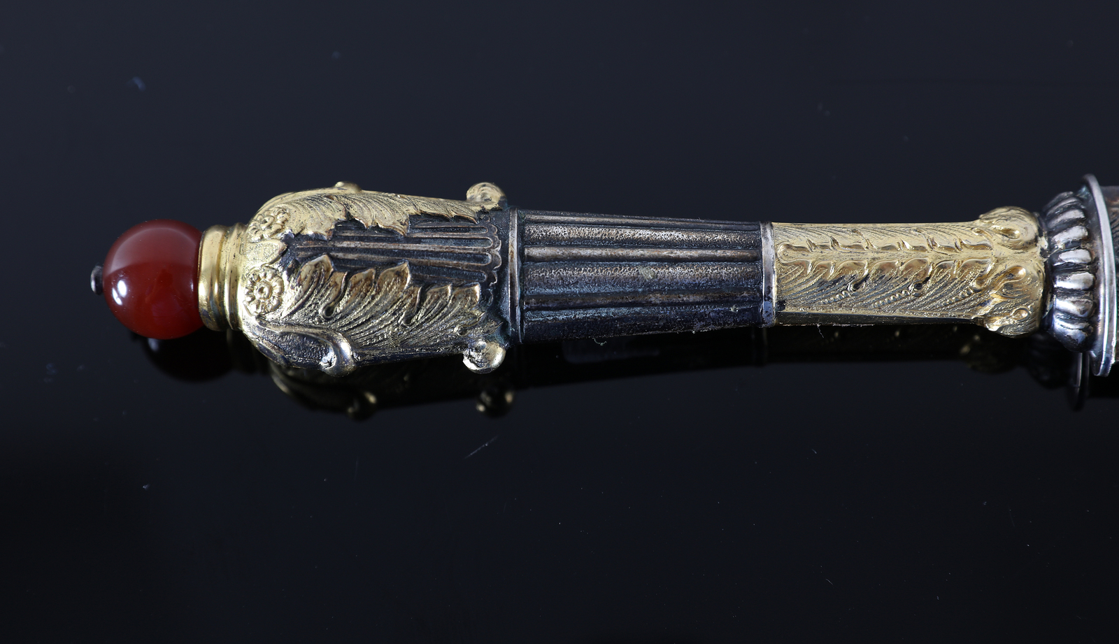 MANIFATTURA DELLA FINE DEL XIX SECOLO Manifattura romana. Tagliacarte. Argento. Cm 3,00 x 33,00. Sigillo papale inciso. Presenti delle laccature in oro.