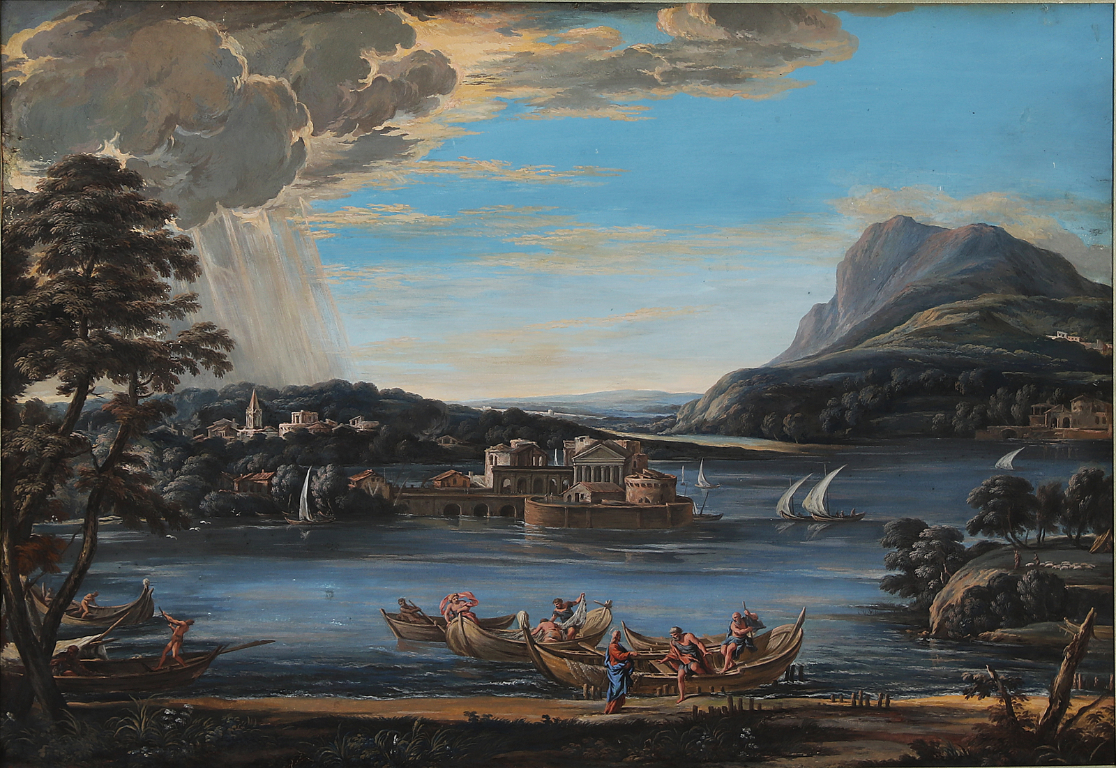 ARTISTA ROMANO DEL XVIII SECOLO Pesca miracolosa. . Tempera su carta. Cm 57,00 x 41,00. . Cornice presente