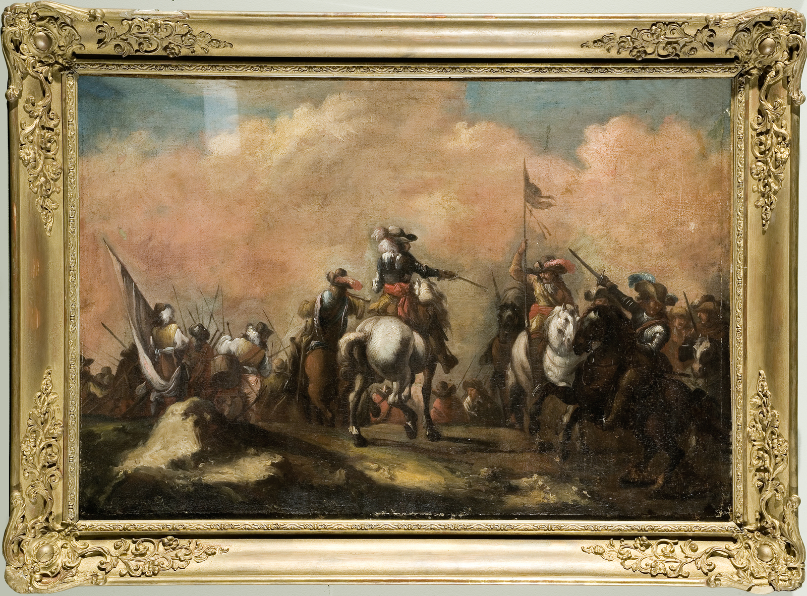 MARINI ANTONIO MARIA (1668 - 1725) Attribuito a. Coppia di battaglie. . Olio su tela. Cm 92,00 x 62,00. . Cornice presente