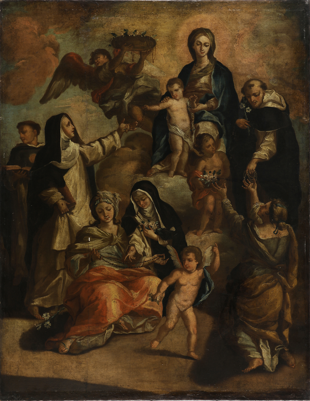 Madonna del Rosario. Olio su tela. Cm 98,00 x 128,00.