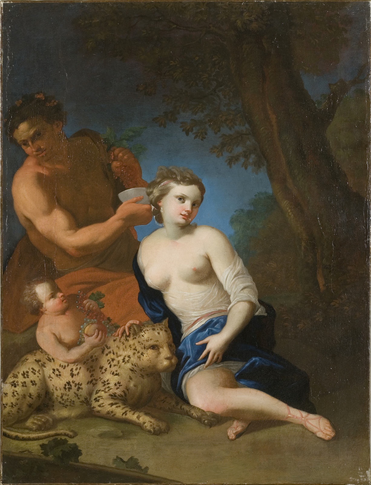 ARTISTA DEL XVIII SECOLO Bacco e Arianna. . Olio su tela. Cm 66,00 x 85,00.