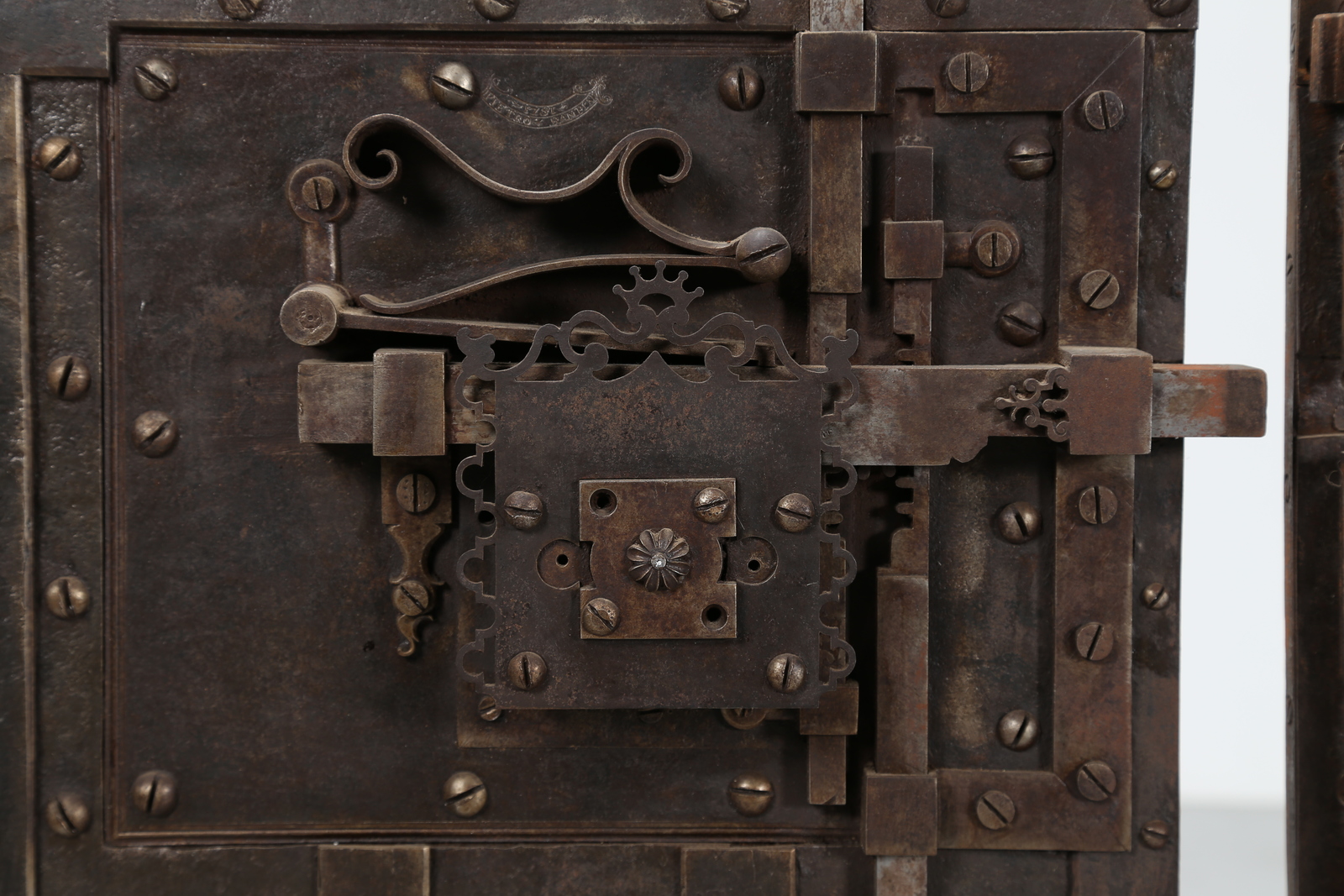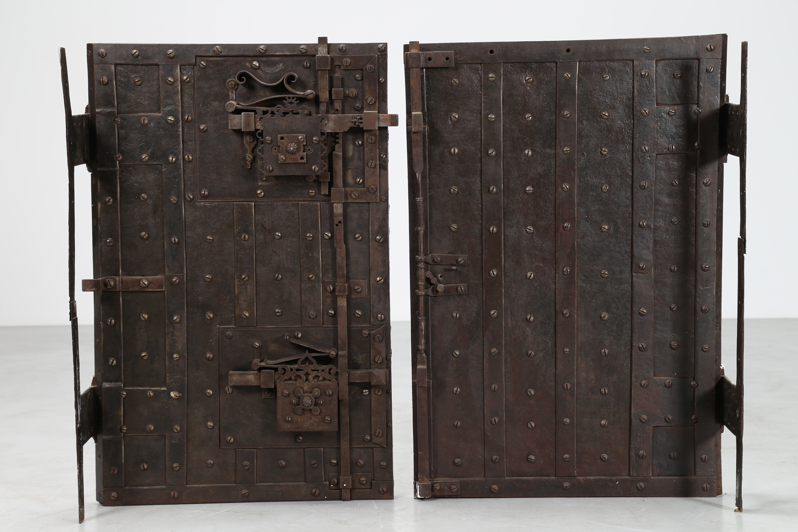 MANIFATTURA DEL XVII SECOLO Coppia di ante da cassaforte in bronzo. . Cm...