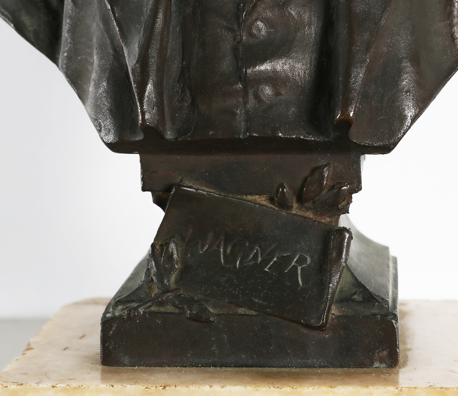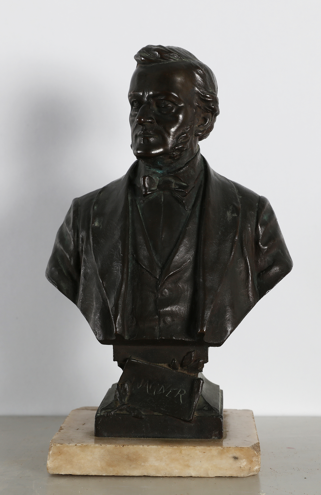 ARTISTA DEL XIX SECOLO Busto di Wagner in bronzo brunito. . Cm 26,50. Firma...
