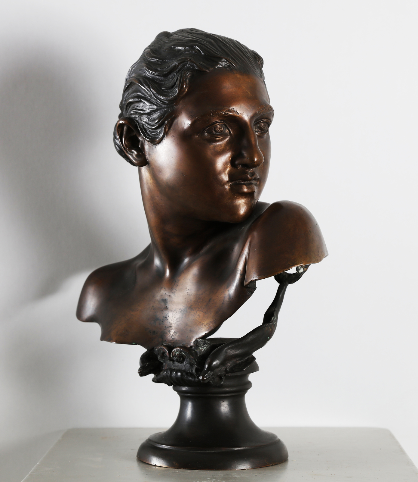 GEMITO VINCENZO (1852 - 1929) Mezzo busto di fanciulla in bronzo brunito. . Cm 46,00. Firma alla base.