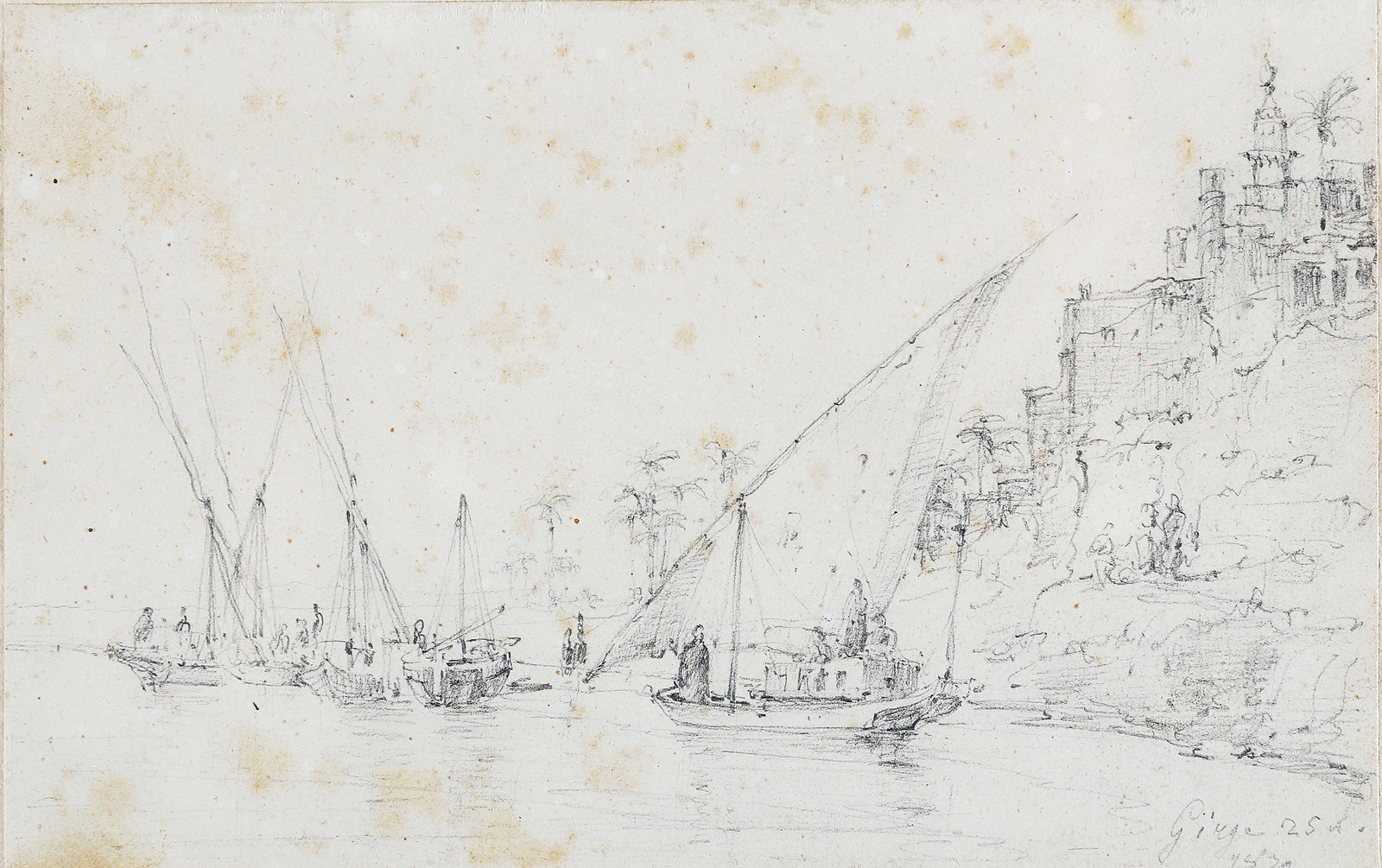 RENICA GIOVANNI (1808 - 1884) Barche sul Nilo. Matita su carta. Cm 17,00 x 10,50. Parzialmente leggibile in basso a destra Girga... Cornice presente
