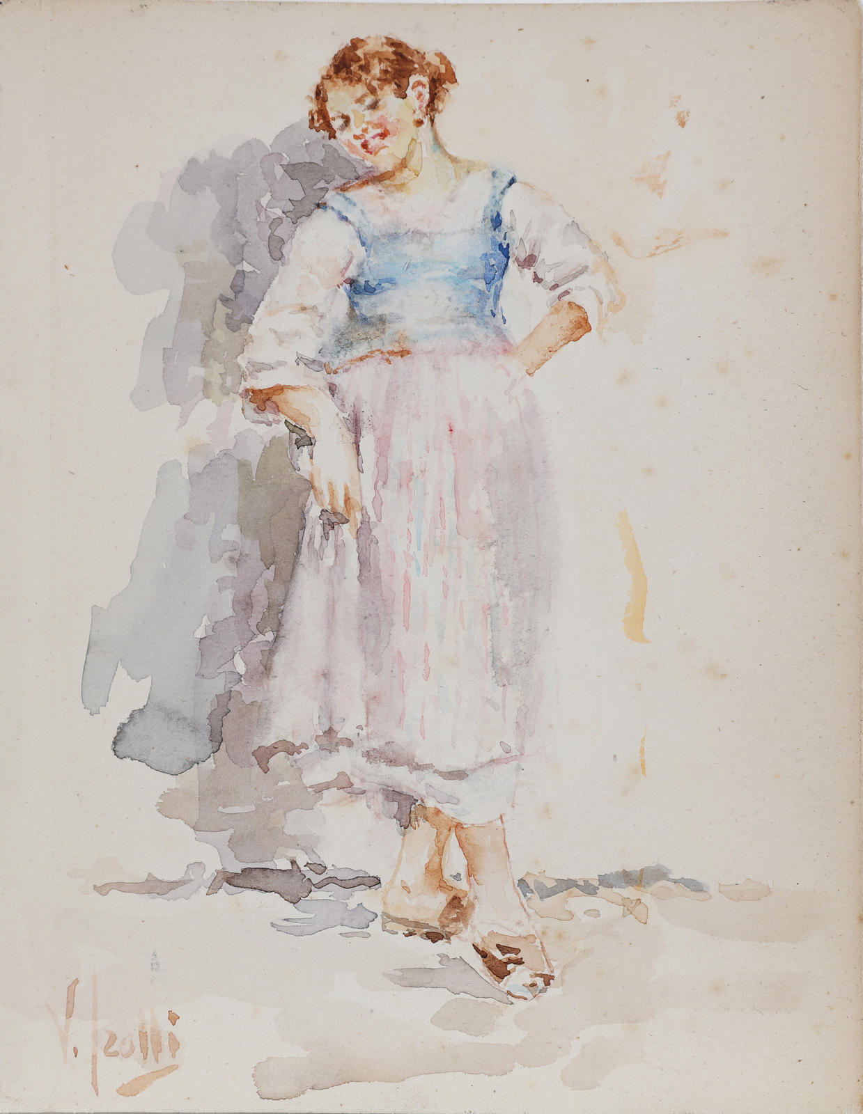 IROLLI VINCENZO (1860 - 1942) Donna. Acquerello . Cm 17,00 x 22,50.
