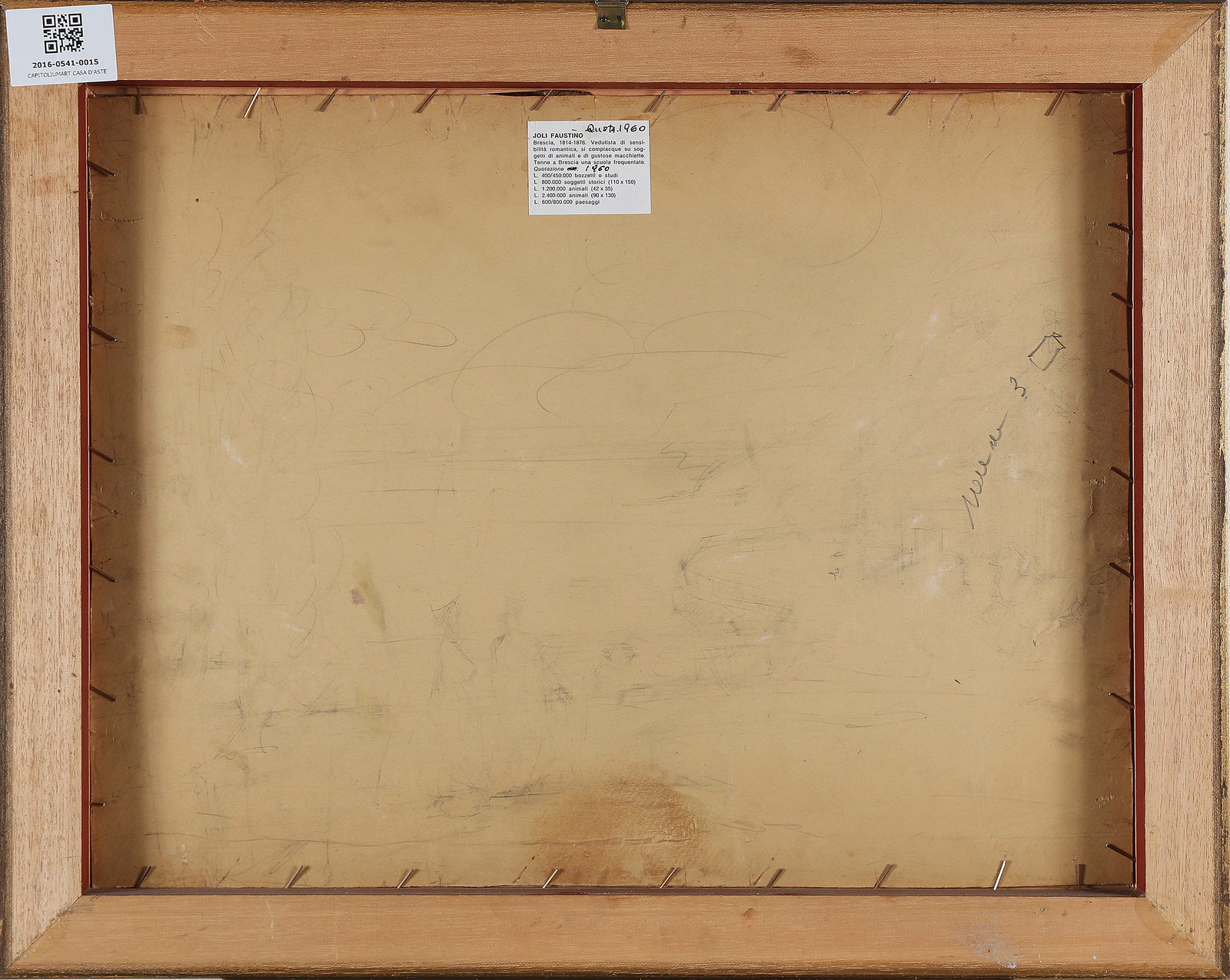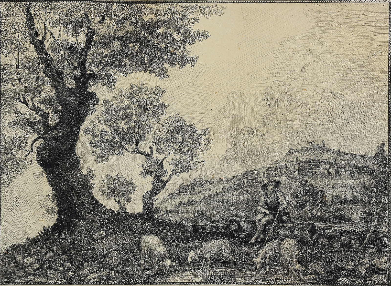JOLI FAUSTINO (1814 - 1876) Paesaggio con pecore e pastore. . 1845. China su carta. Cm 52,00 x 41,00. Firma e anno in basso. . Cornice presente