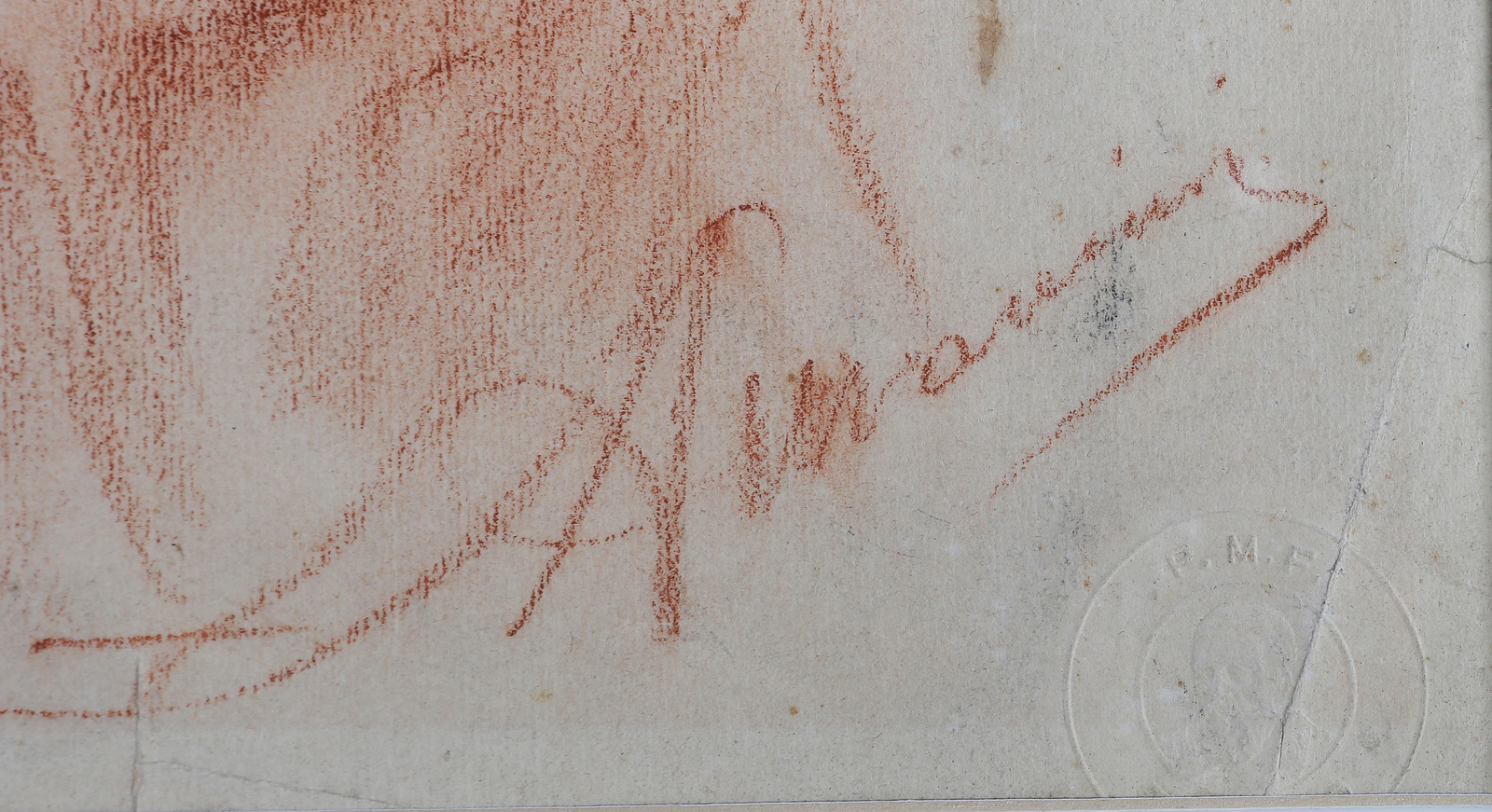 MANCINI ANTONIO (1852 - 1930) . Sanguine on paper . Cm 47,50 x 32,00. Cornice presente