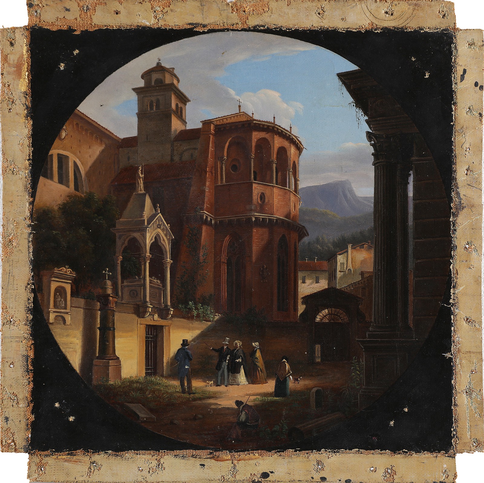 MOJA FEDERICO (1802 - 1885) Chiesa. . Olio su tela. Cm 26,00 x 26,00.