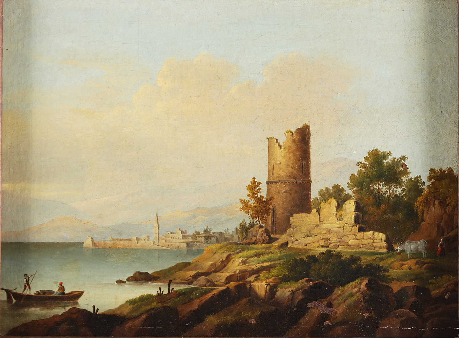 ARTISTA ITALIANO DEL XIX SECOLO Paesaggio con figure. . Olio su tela. Cm...