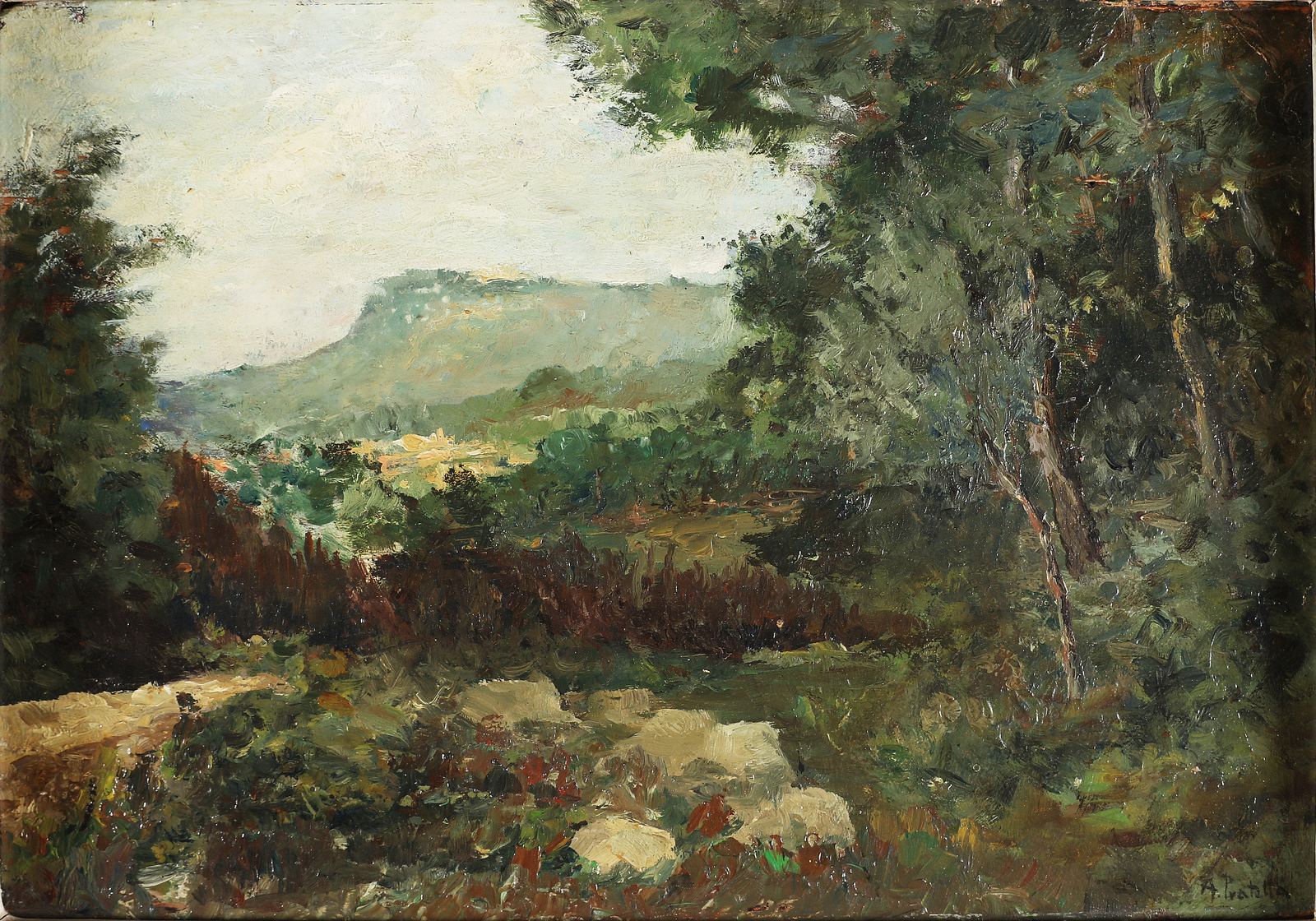 PRATELLA ATTILIO (1856 - 1949) Paesaggio d'Agnano. Olio su tavola. Cm 32,00 x 22,00. Firma in basso a destra. Cornice presente