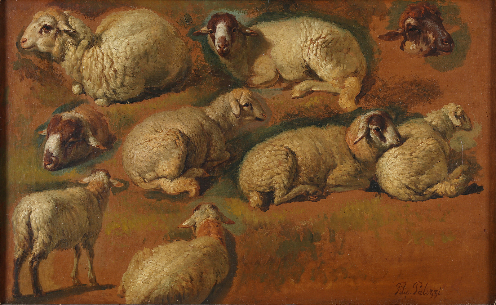 PALIZZI FILIPPO (1818 - 1899) Studio per armenti. . Olio su tela. Cm 51,00 x 32,00. Firma in basso a destra. . Cornice presente