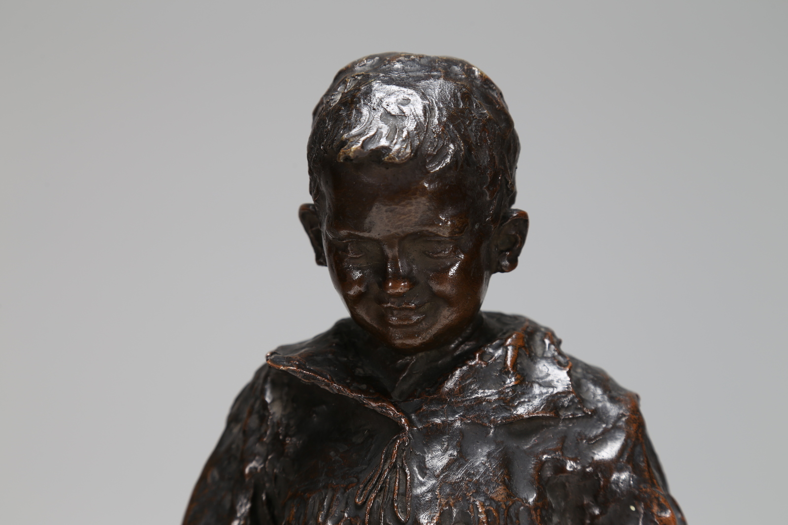 RENDA GIUSEPPE (1859 - 1939) Ritratto di bimbo. Scultura in bronzo. Cm 10,00 x 40,00 x 16,00. Firma alla base. Poggiante su una base di marmo di 4 x 15 x 22 cm.
