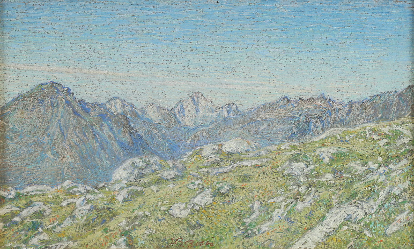 BOSIO GIANBATTISTA (1873 - 1946) Mattino sull'Alpe. Pastello su cartoncino ....