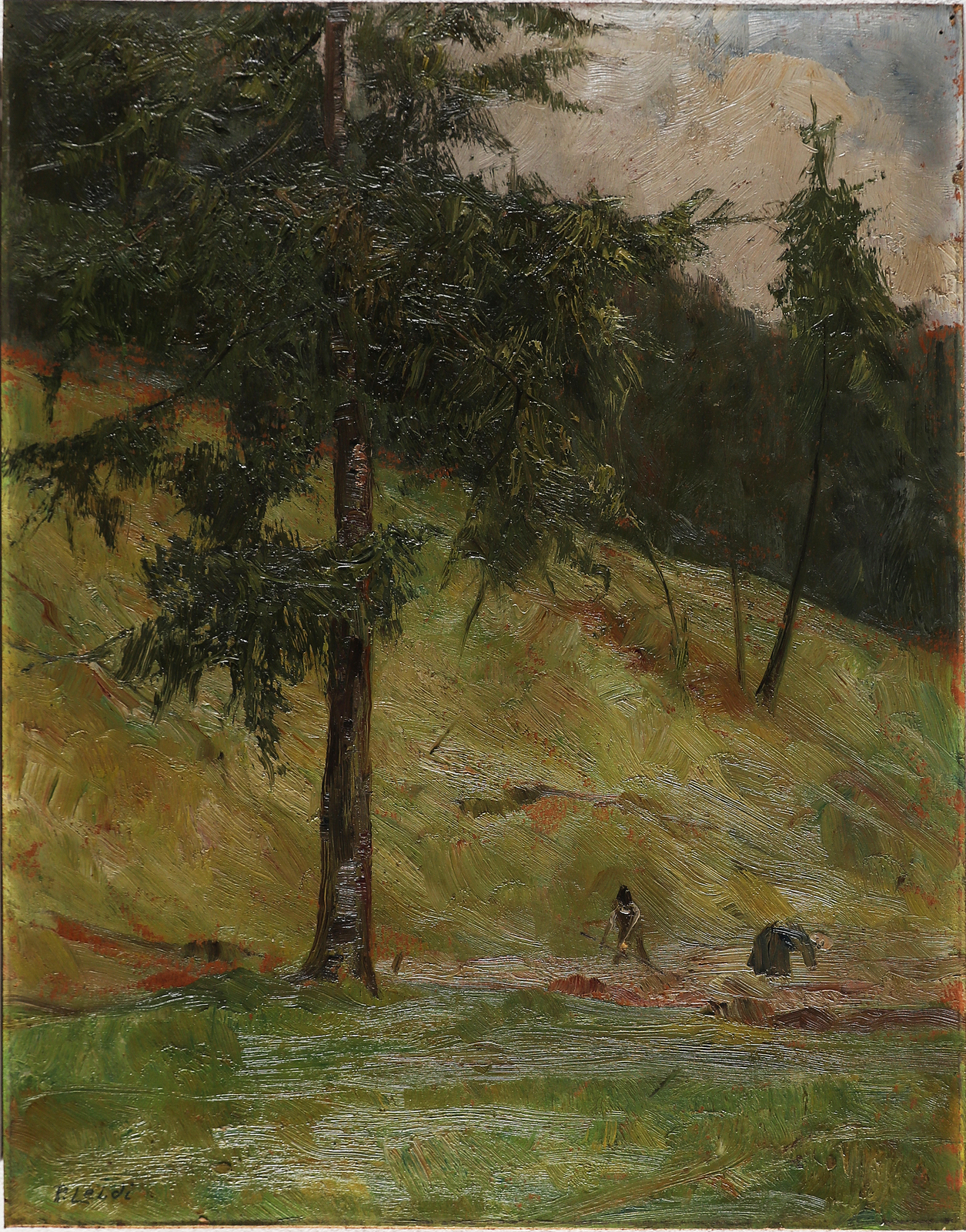 LEIDI PIETRO (1892 - 1930) Paesaggio con contadina. Olio su cartone pressato....