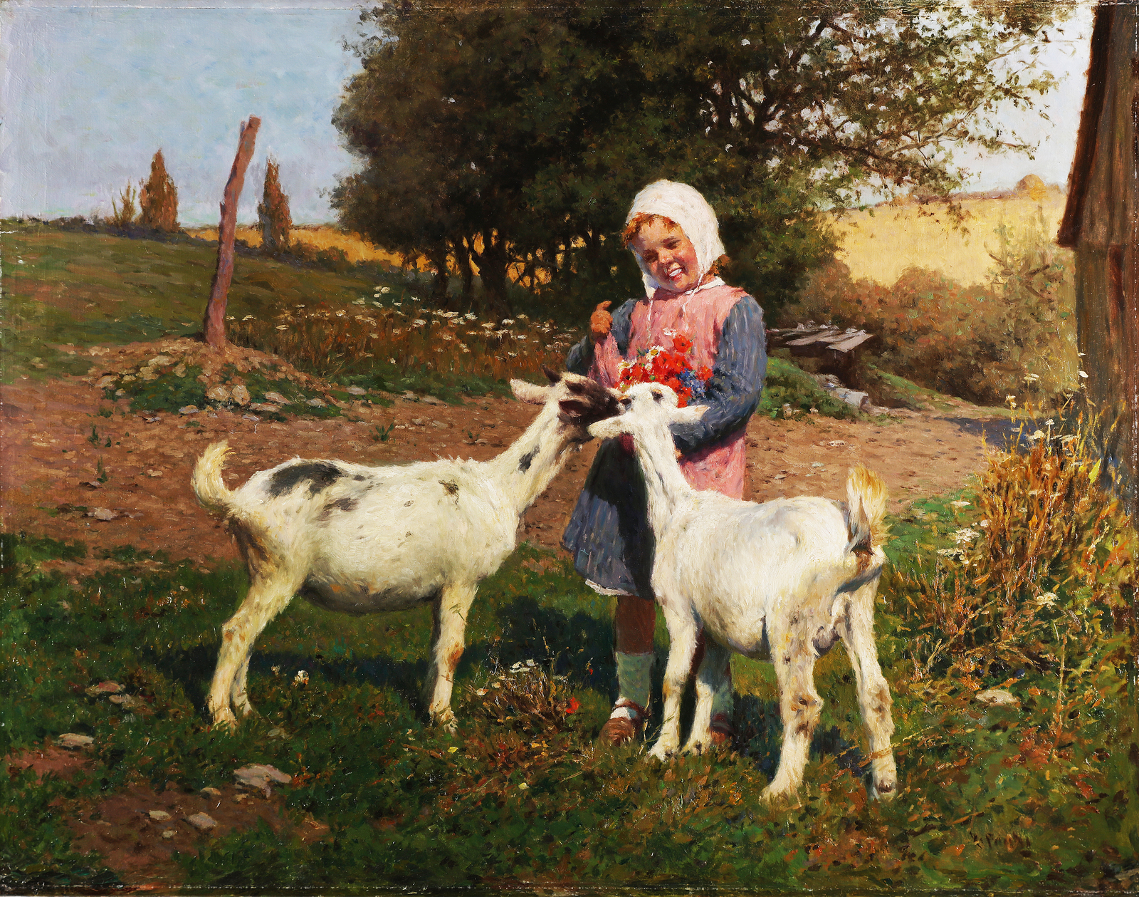 FEUCHT THEODOR EUGEN CRISTOPH (1897 - 1944) La pastorella. Olio su tela. Cm 96,00 x 80,00. Firma in basso a destra.
