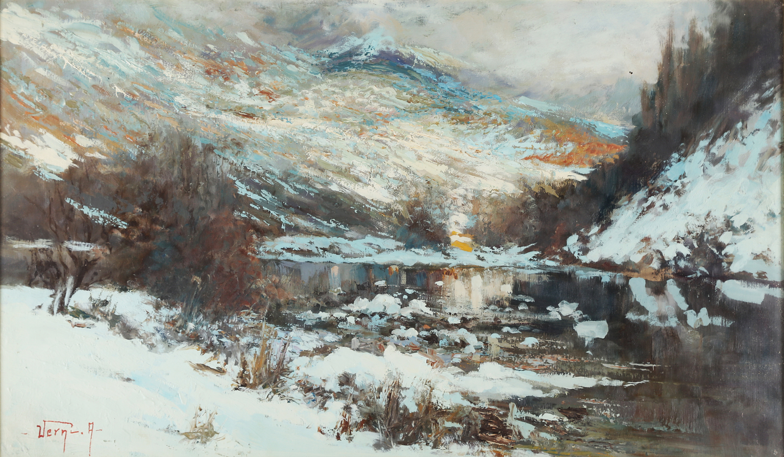 VERNI ARTURO (1891 - 1960) Paesaggio invernale. Olio su faesite. Cm 77,00 x 49,00. Firma in basso a sinistra. . Cornice presente