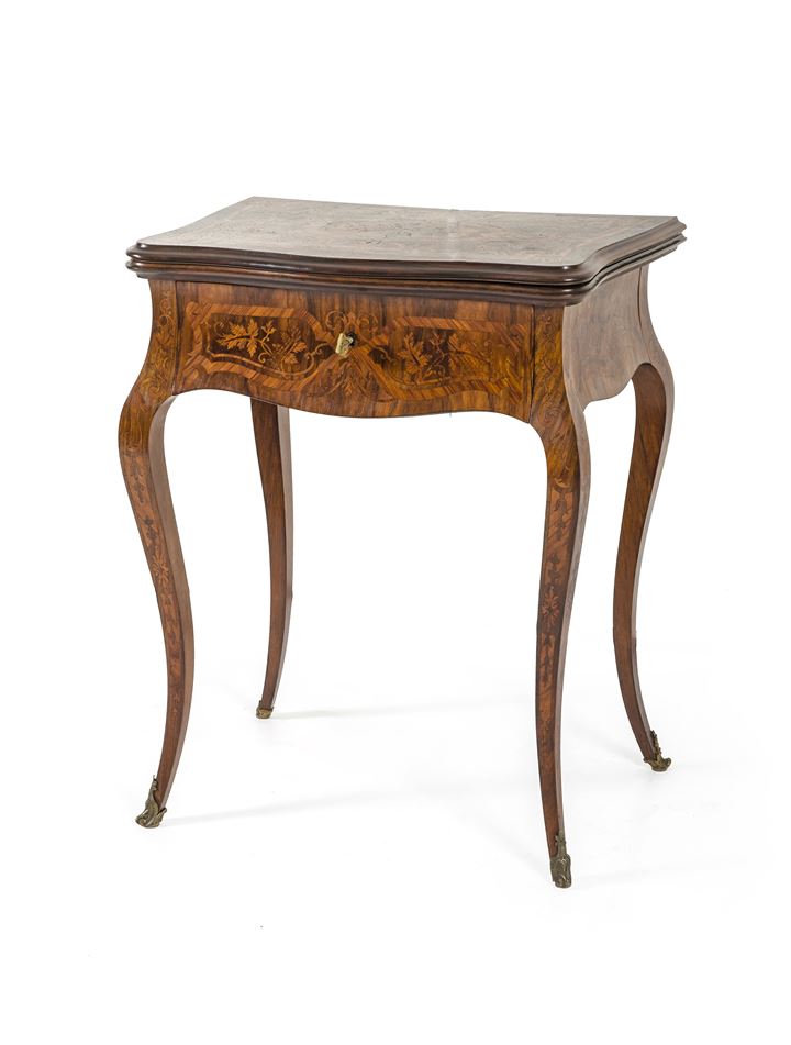 TAVOLINO DA GIOCO H. cm 73x62x43 In palissandro e legno di rosa, intarsiato a...