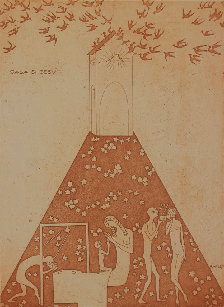 WILDT ADOLFO Milano 1868 - 1931 "Casa di Gesù" 32,5x26 foglio, 26x19,5...